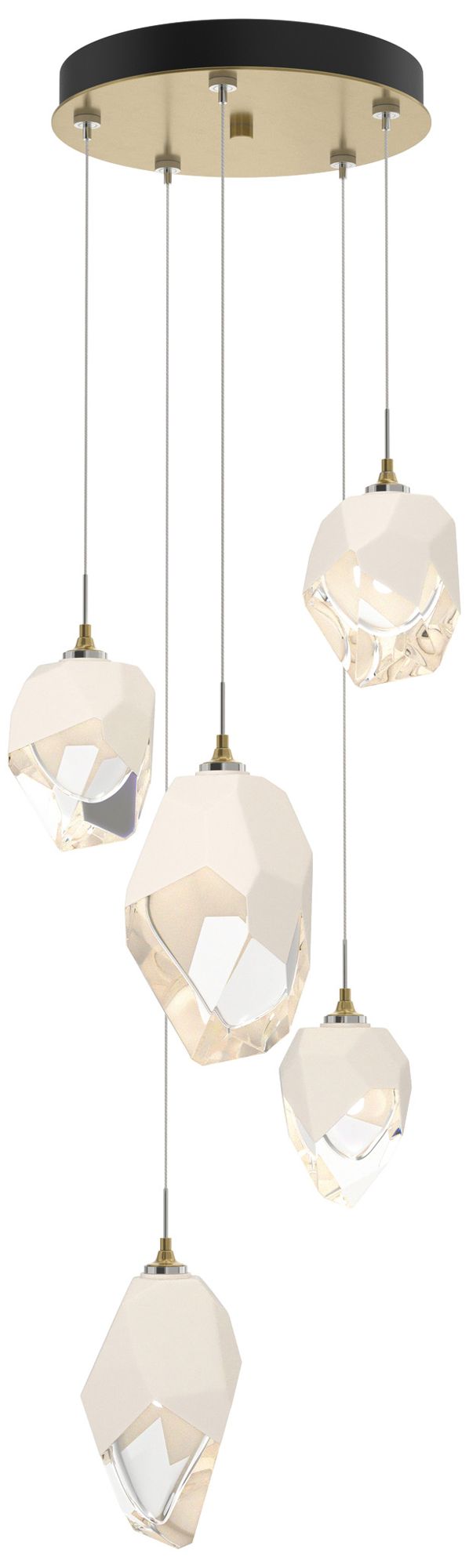 Chrysalis 15.7"W 5-Light Mixed White Crystal Modern Brass Long Pendant