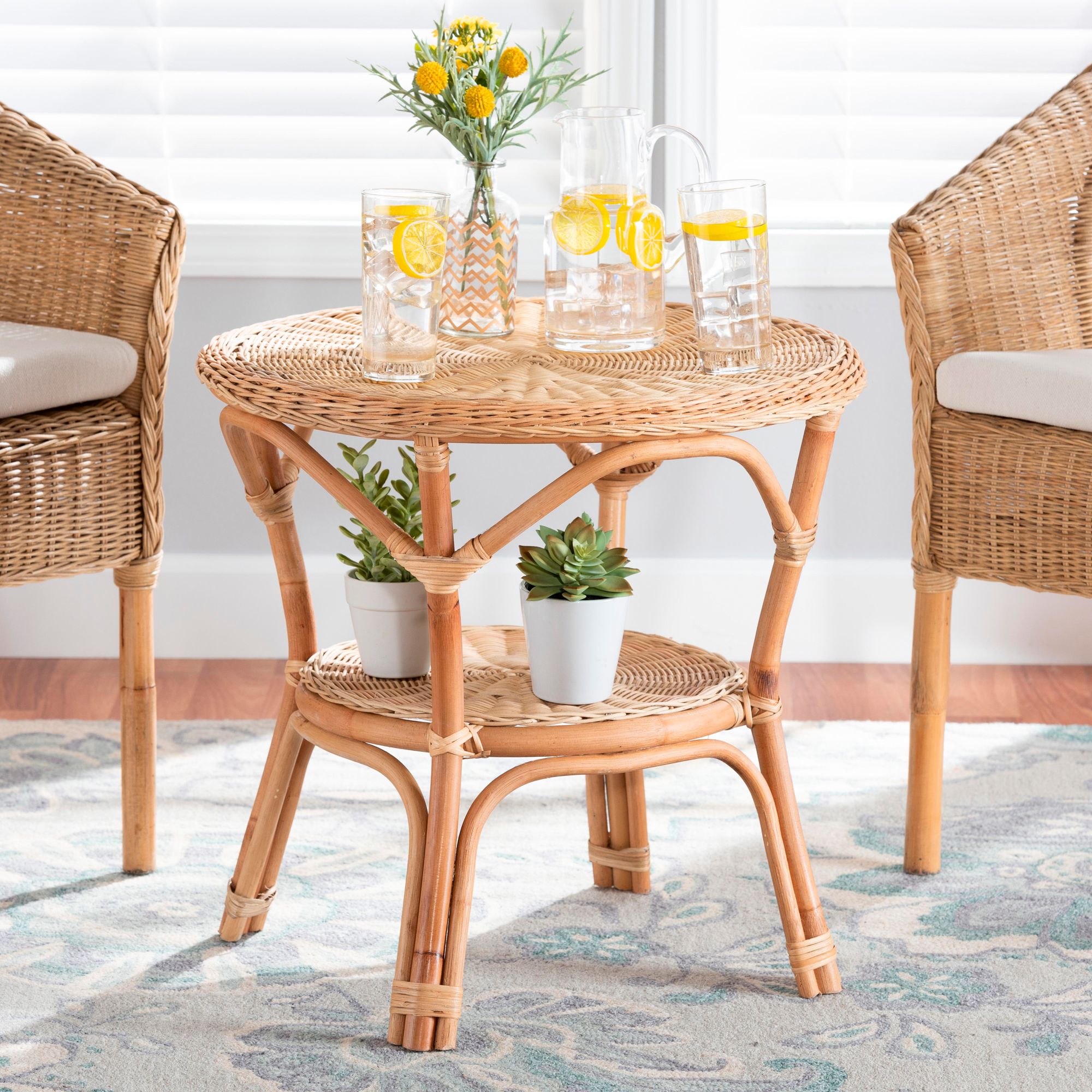 Abbey 22" Wide Natural Brown Rattan 1-Shelf Coffee Table