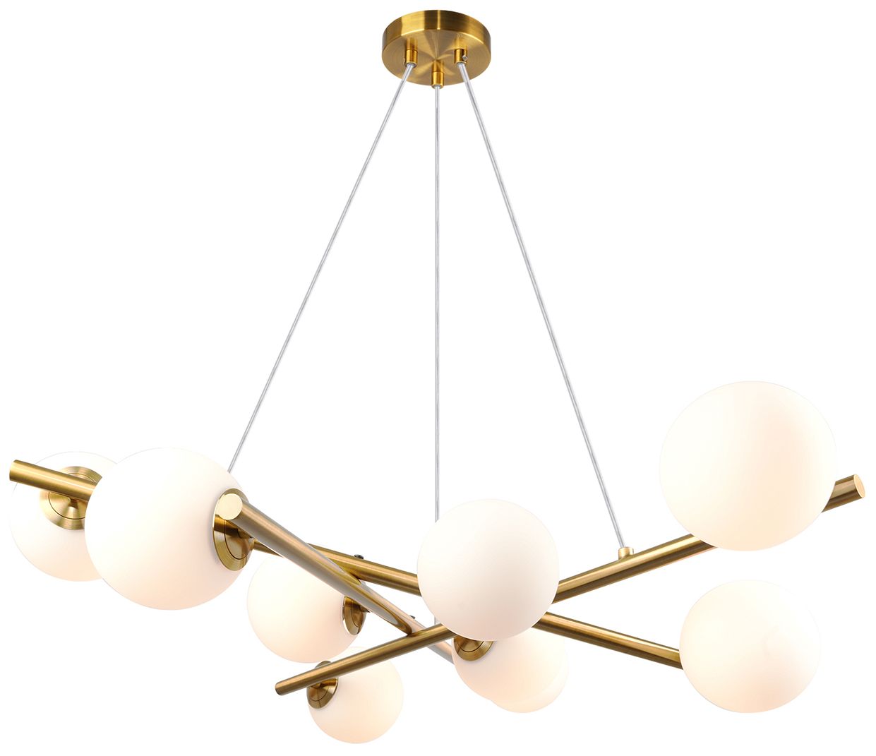 Modena 31"W 9-Light Plated Brushed Brass Chandelier w/ White Glass Sha
