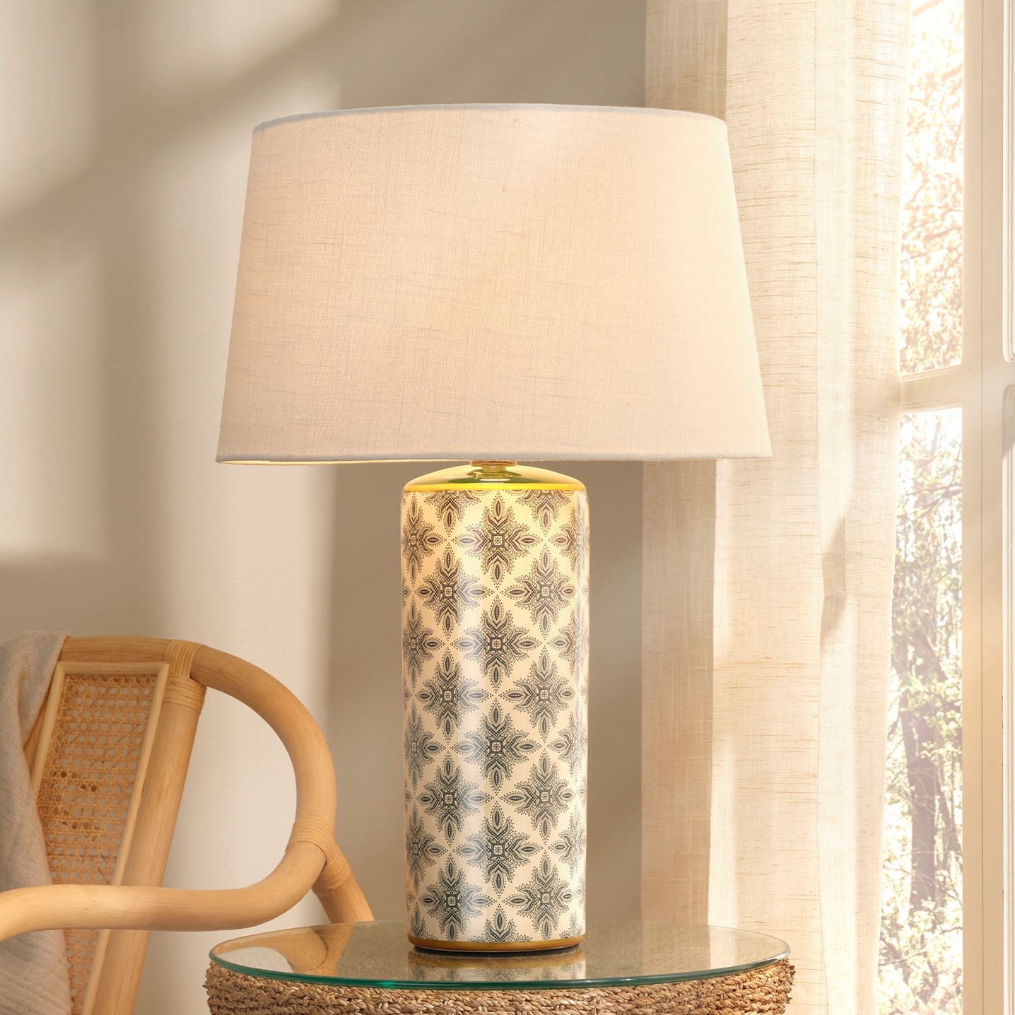 Jamie Young Harlequin Ceramic Table Lamp with Linen Shade 31"