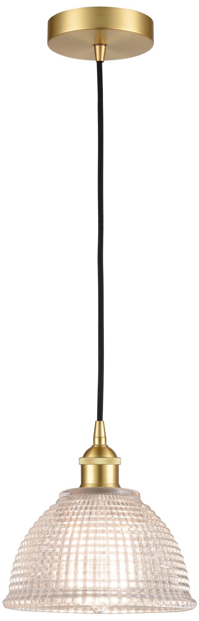 Edison Arietta 8" Satin Gold Cord Hung Mini Pendant w/ Clear Shade