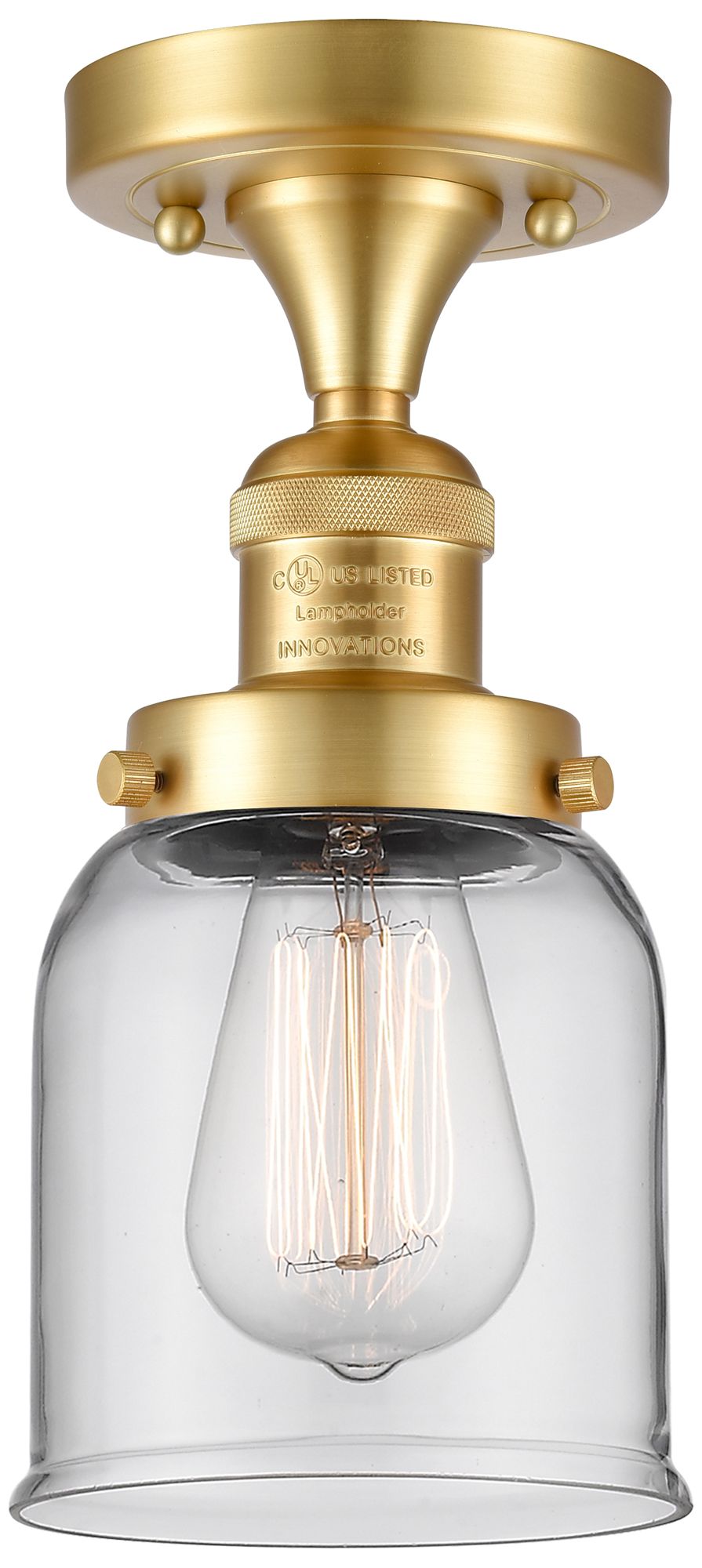 Bell 5" Wide Satin Gold Semi Flush Mount w/ Clear Shade