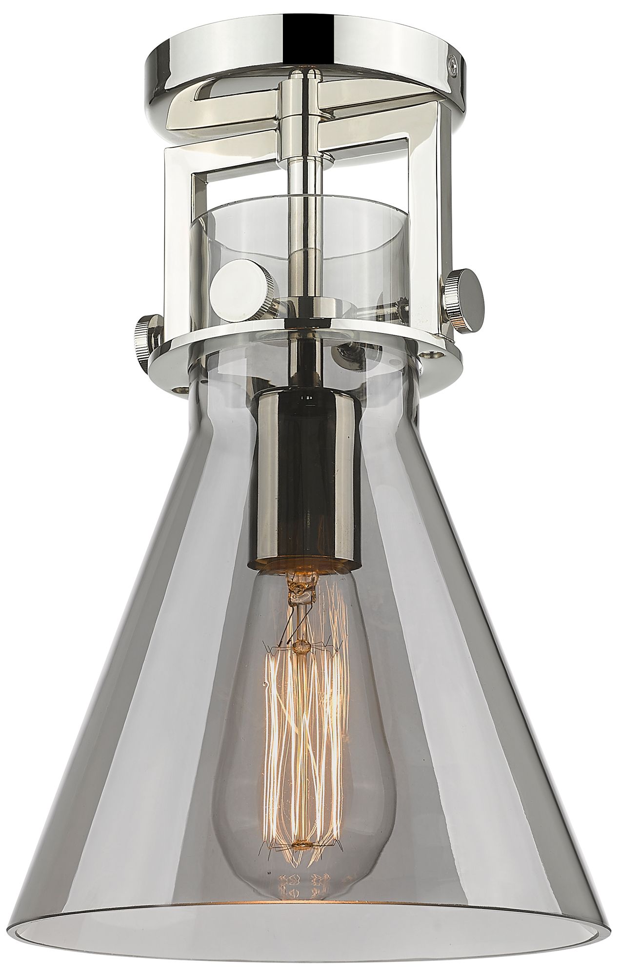 Newton Cone 8" Wide Polished Nickel Flush Mount with Smoke Shade