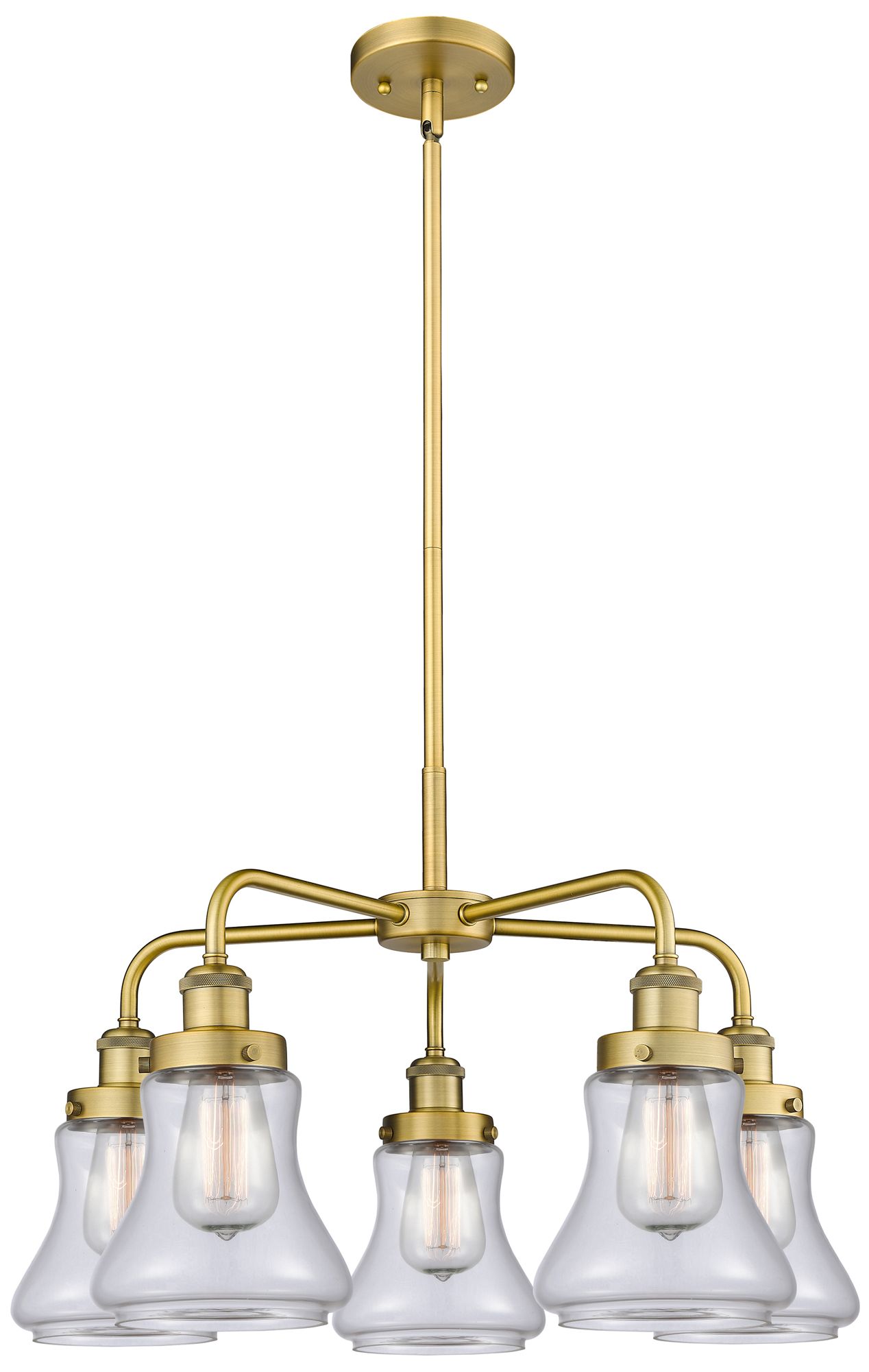 Bellmont 24"W 5 Light Brushed Brass Stem Hung Chandelier w/ Clear Shad