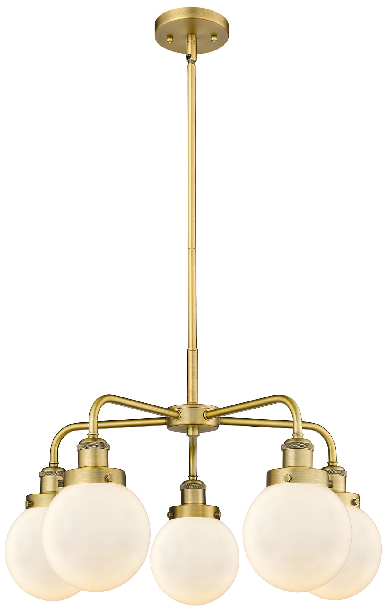 Beacon 24"W 5 Light Brushed Brass Stem Hung Chandelier w/ White Shade