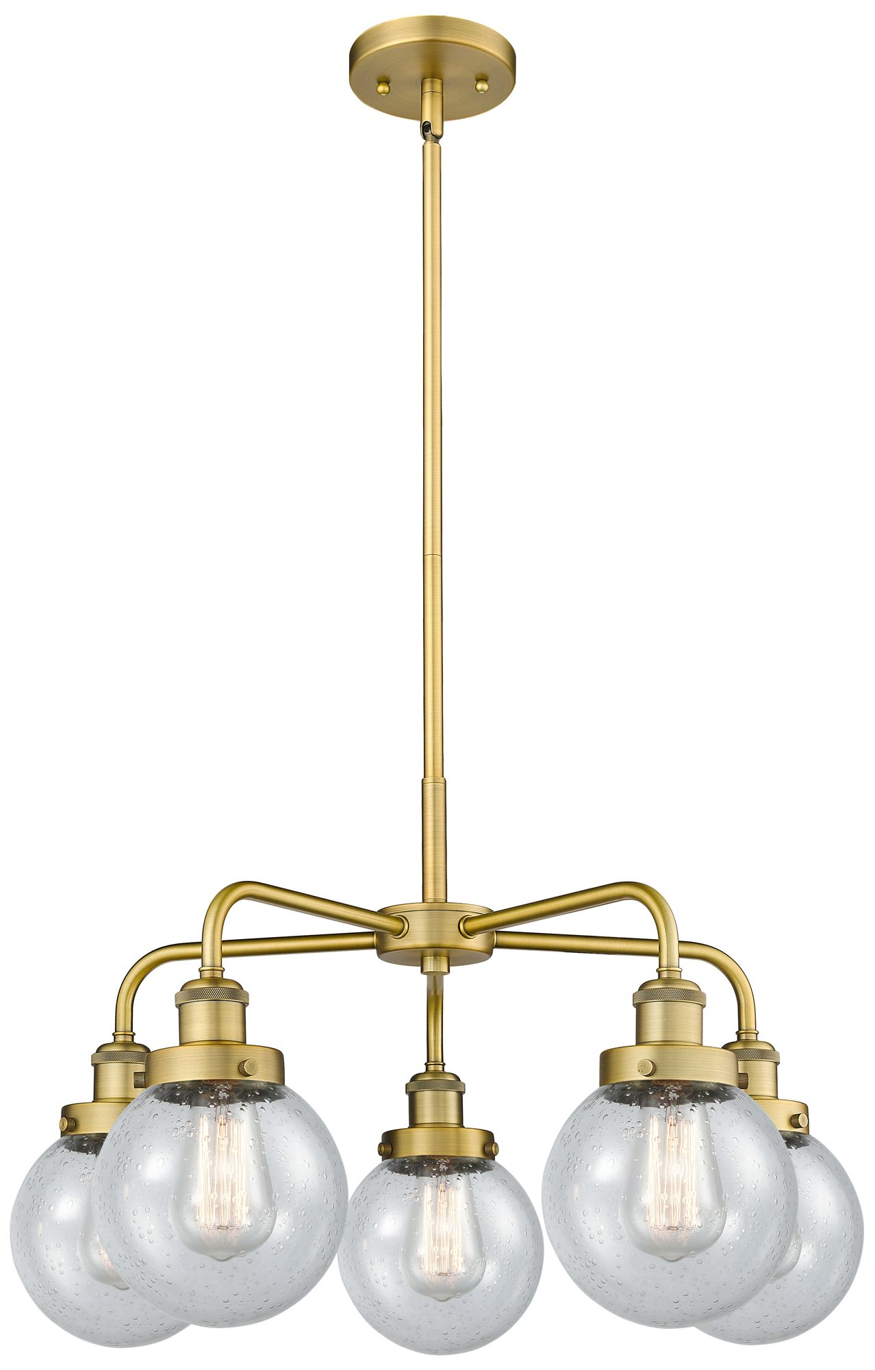 Beacon 24"W 5 Light Brushed Brass Stem Hung Chandelier w/ Seedy Glass
