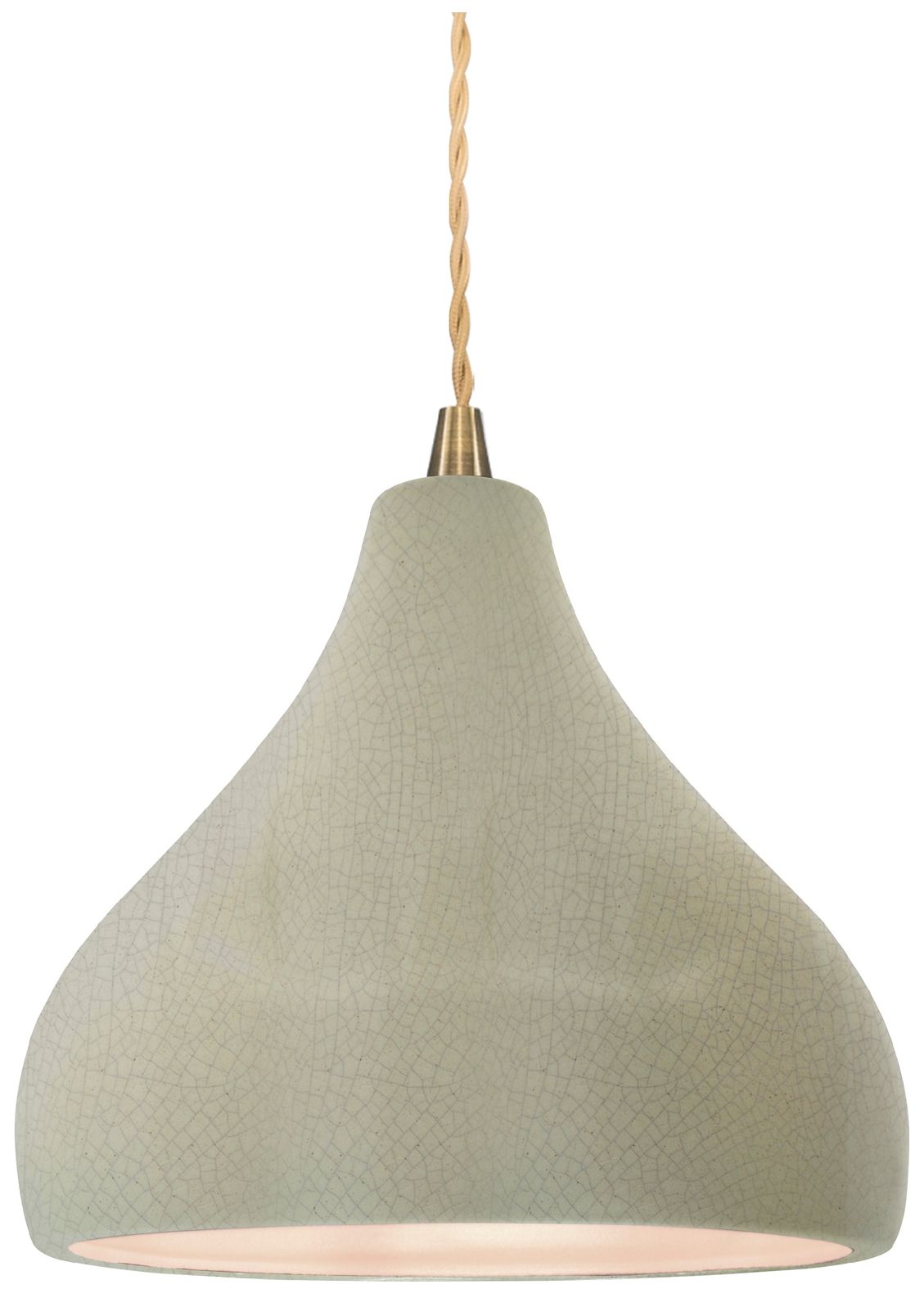 8"W Celadon Frame Antique Brass Small Droplet Beige Twisted Pendant