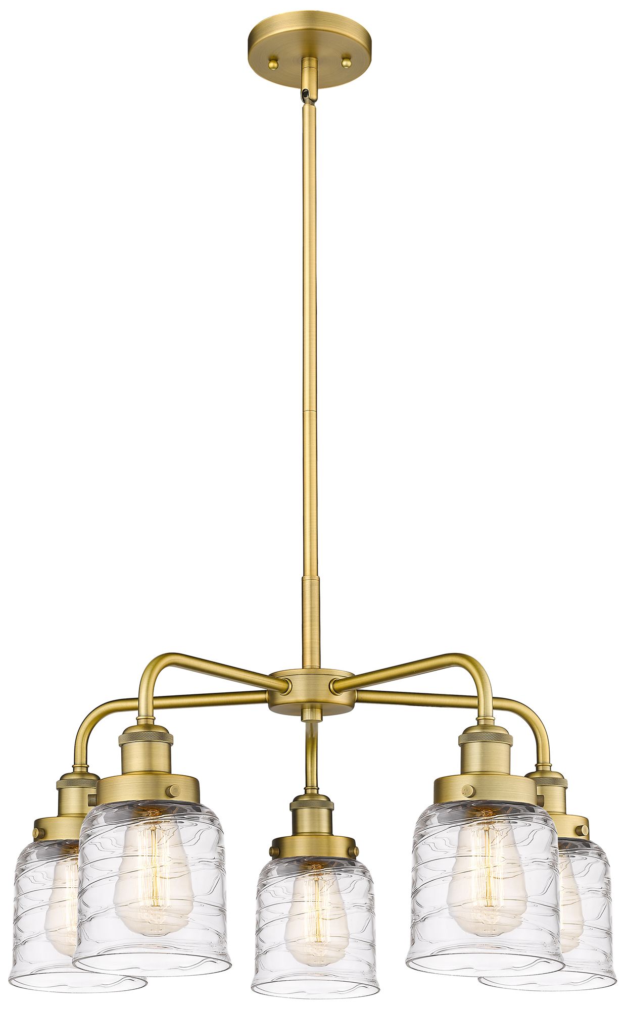 Bell 23"W 5 Light Brushed Brass Stem Hung Chandelier w/ Deco Swirl Sha