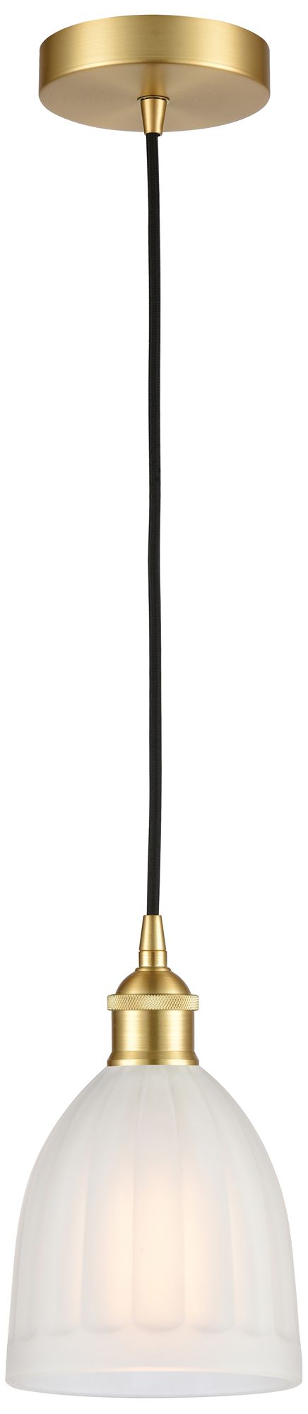 Edison Brookfield 6" Satin Gold Cord Hung Mini Pendant w/ White Shade
