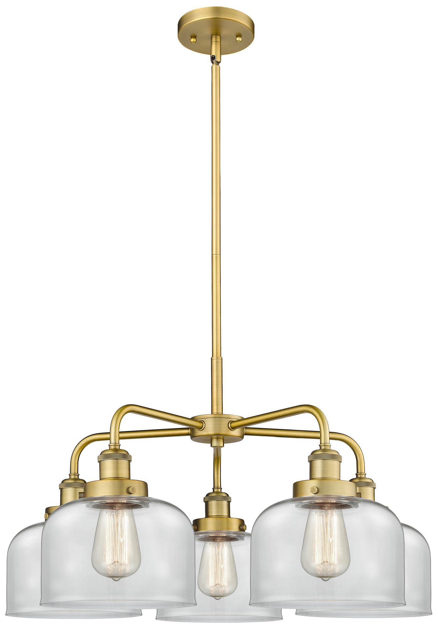 Bell 26"W 5 Light Brushed Brass Stem Hung Chandelier With Clear Glass