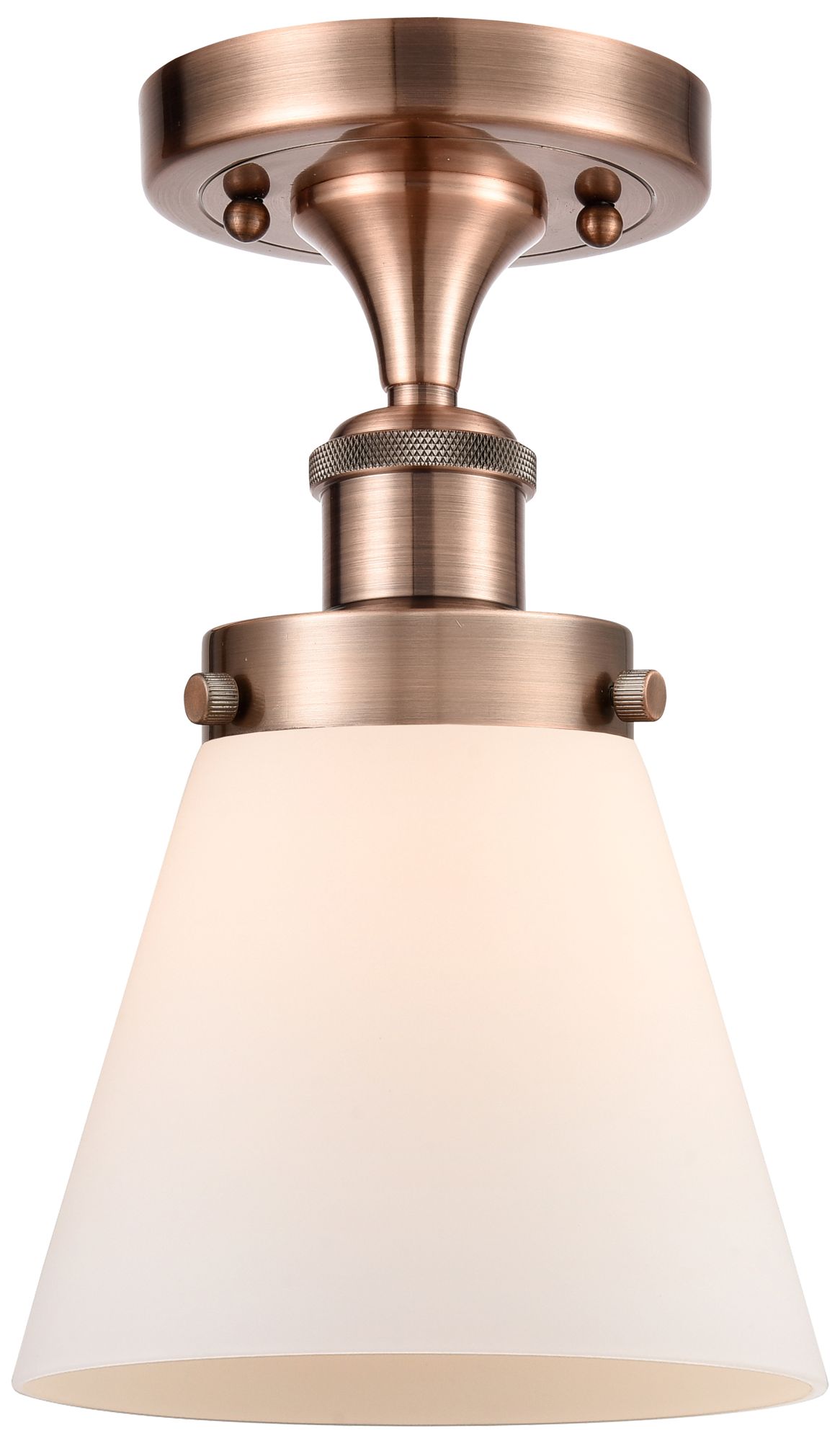 Ballston Urban Cone 6" Semi-Flush Mount - Antique Copper - Matte Whit