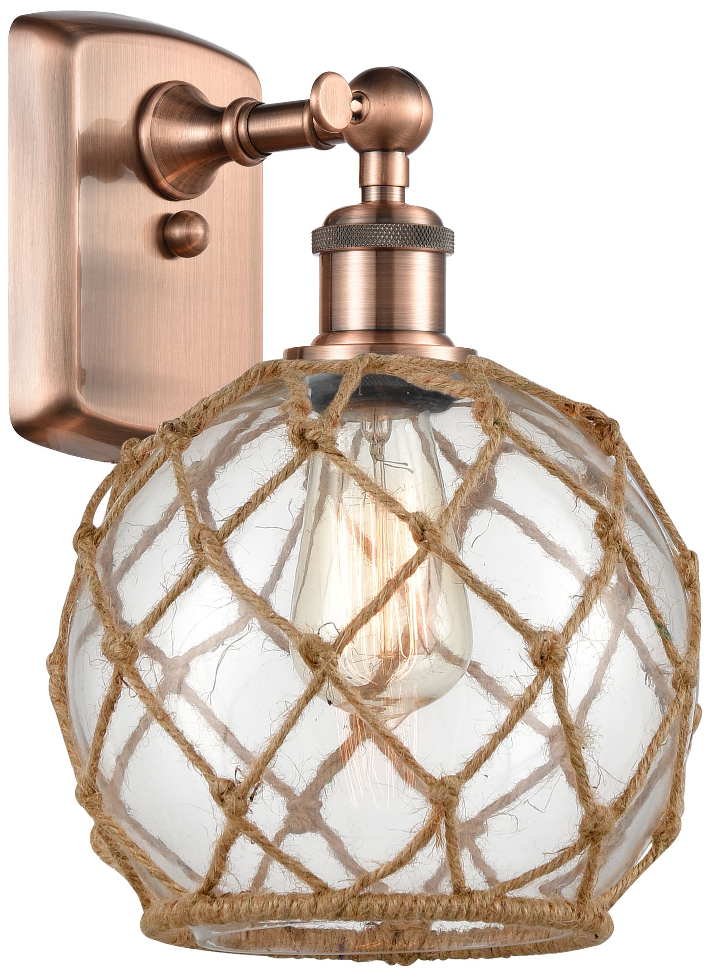 Farmhouse Rope 13" High Copper Sconce w/ Clear Glass with Brown Rope S