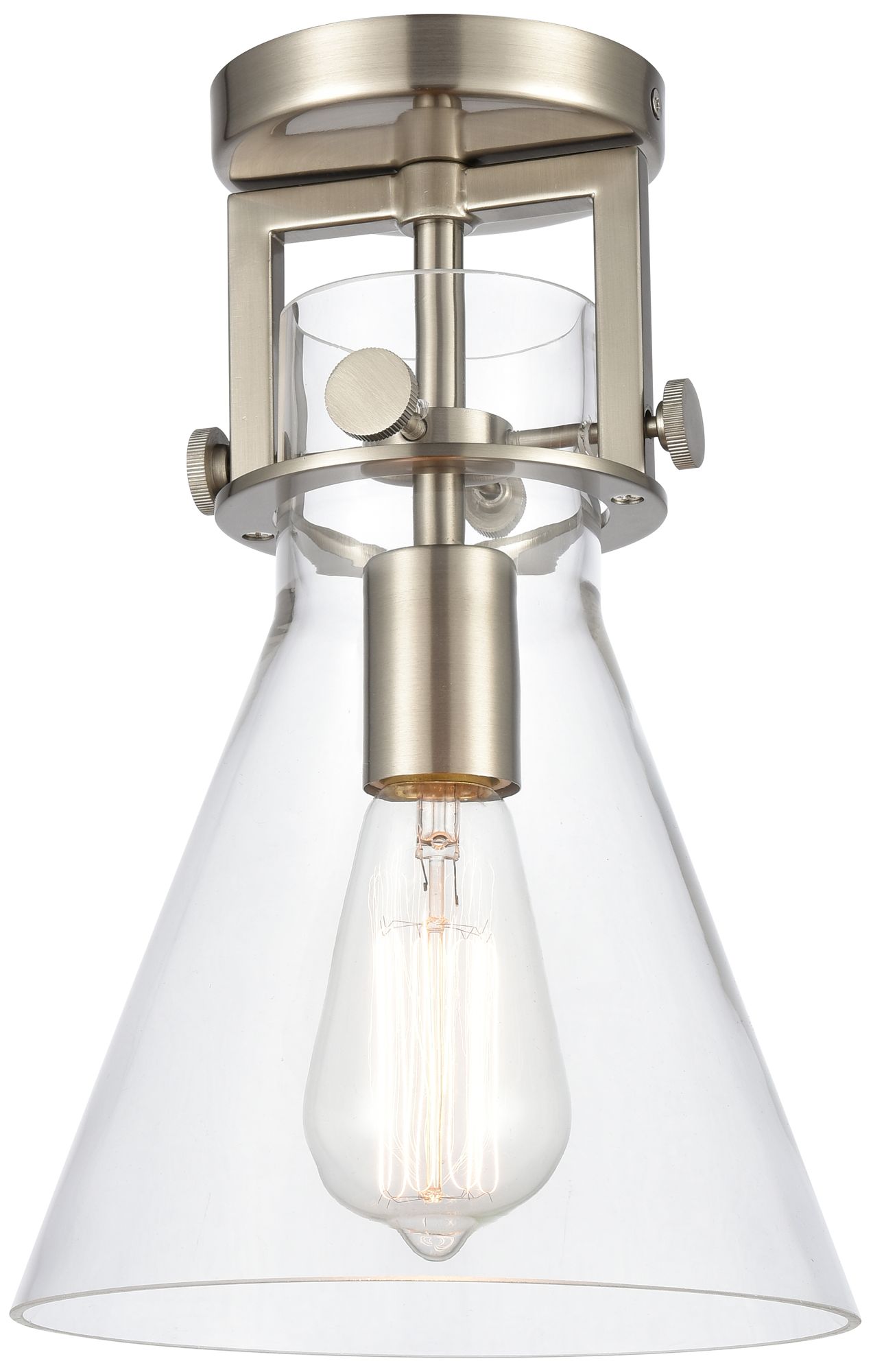 Newton Cone 8" Wide Satin Nickel Flush Mount with Clear Shade