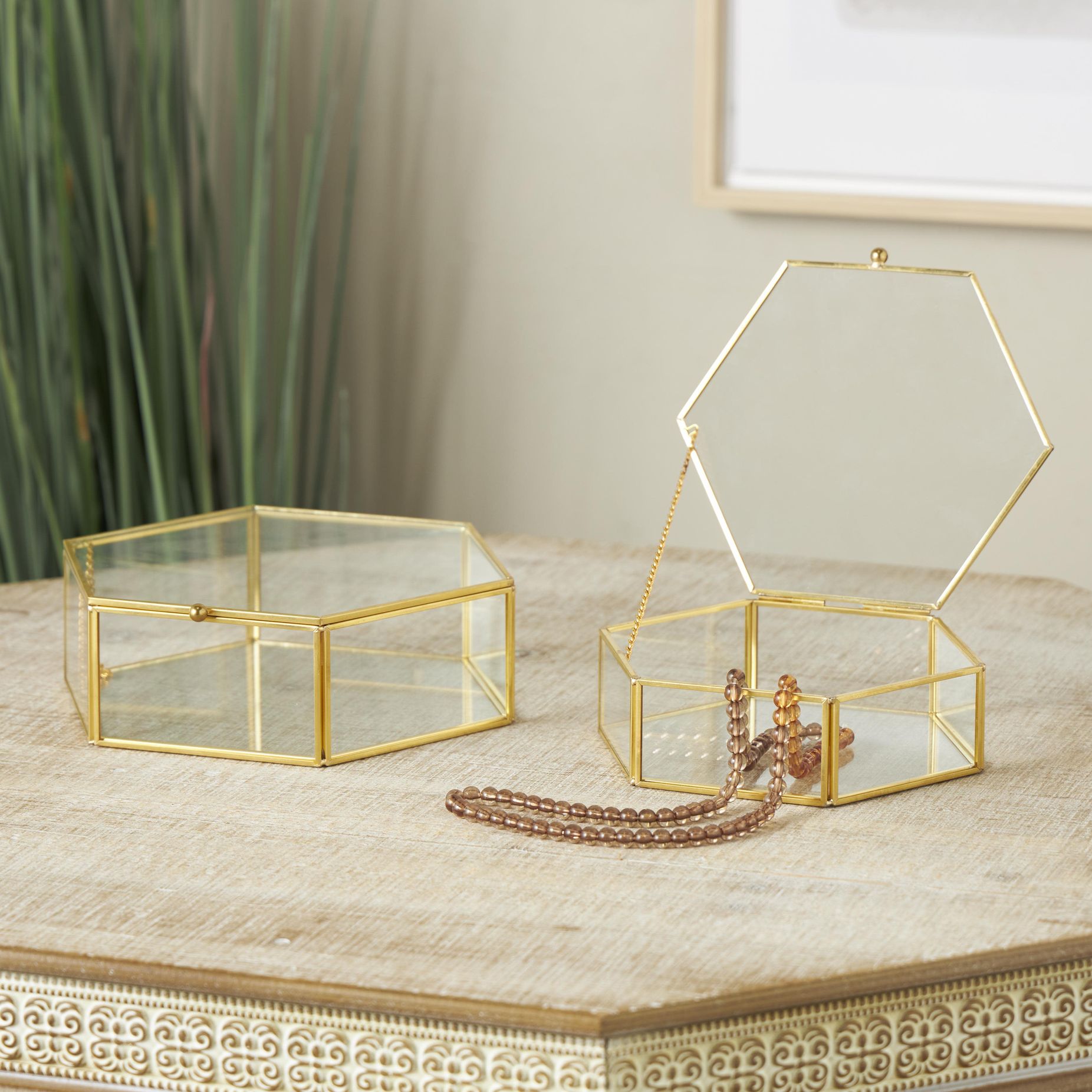 Clear Glass Glam Jewelry Box, S/2 8", 7"W