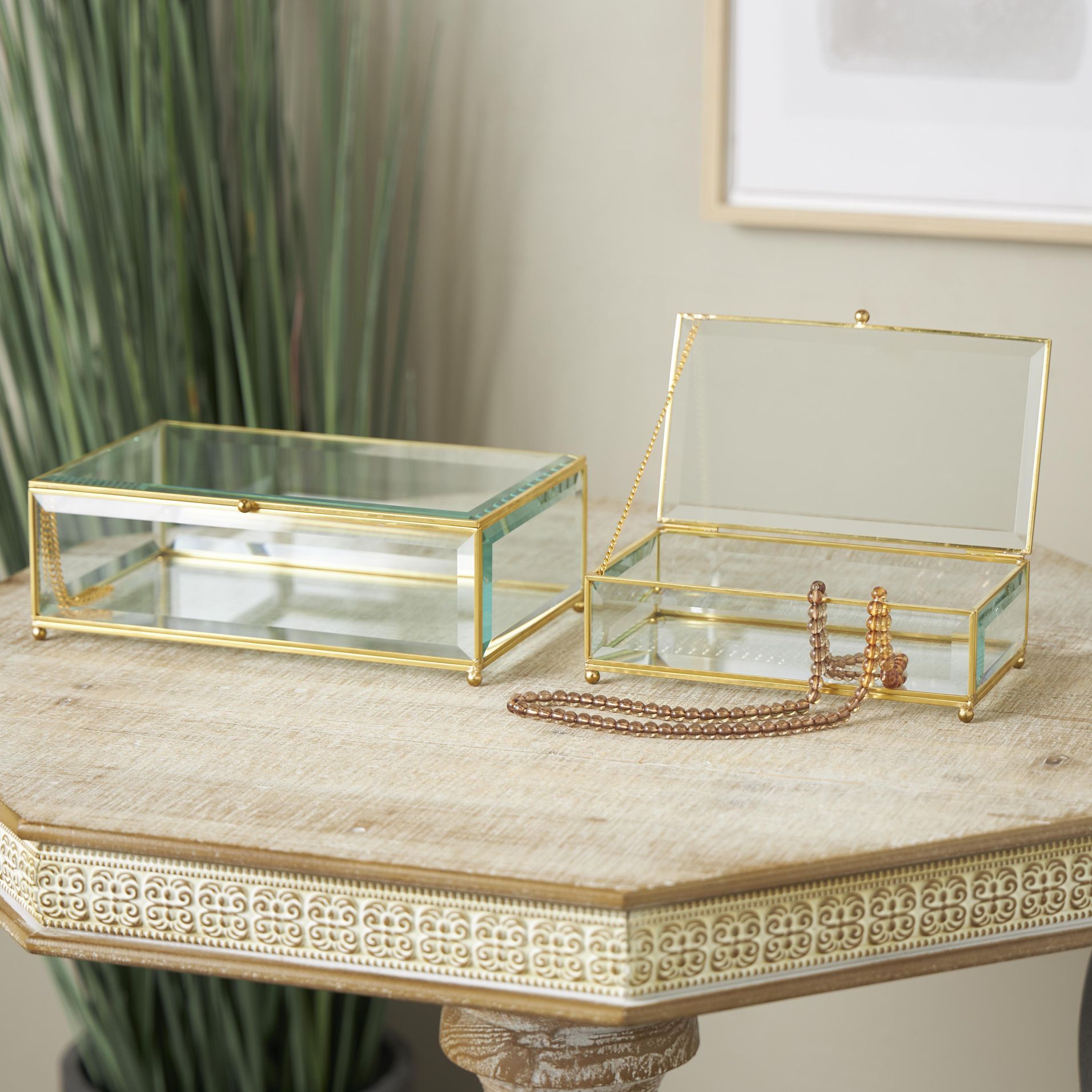 Clear Glass Glam Jewelry Box, S/2 10", 8"W