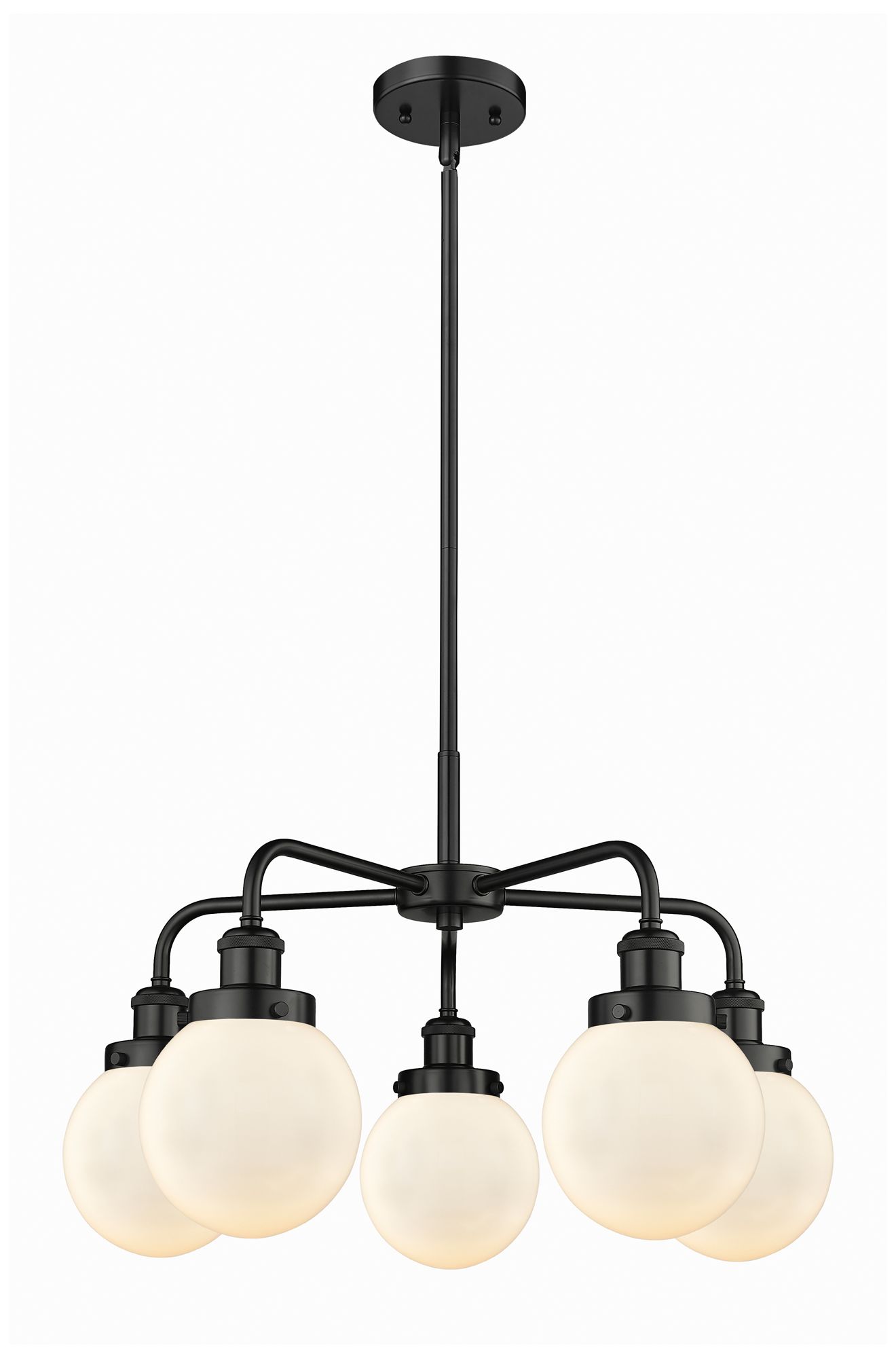 Beacon 24"W 5 Light Matte Black Stem Hung Chandelier w/ White Shade