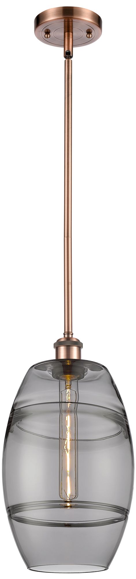 Ballston Vaz 8"W Antique Copper Stemmed Mini Pendant w/ Light Smoke Sh