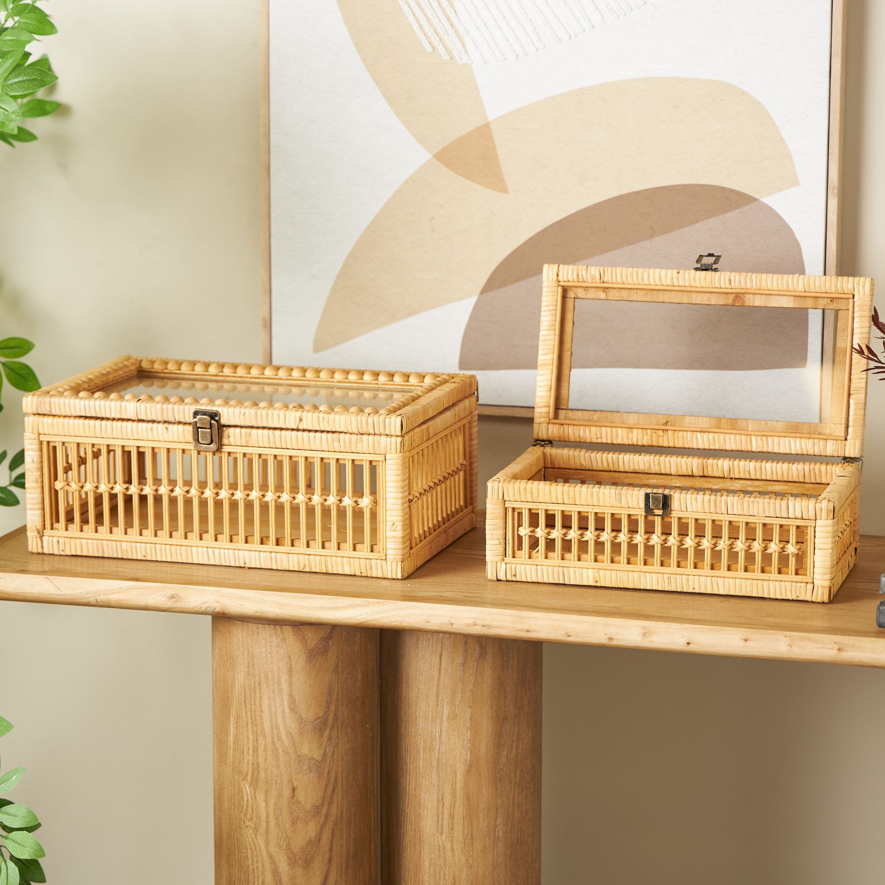 Brown Rattan Traditional Box, S/2 15", 13"W