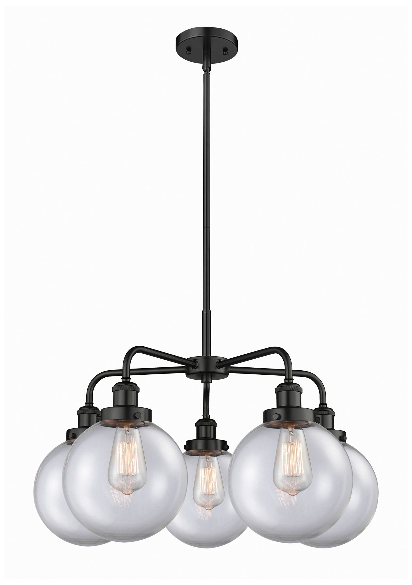 Beacon 26"W 5 Light Matte Black Stem Hung Chandelier With Clear Glass