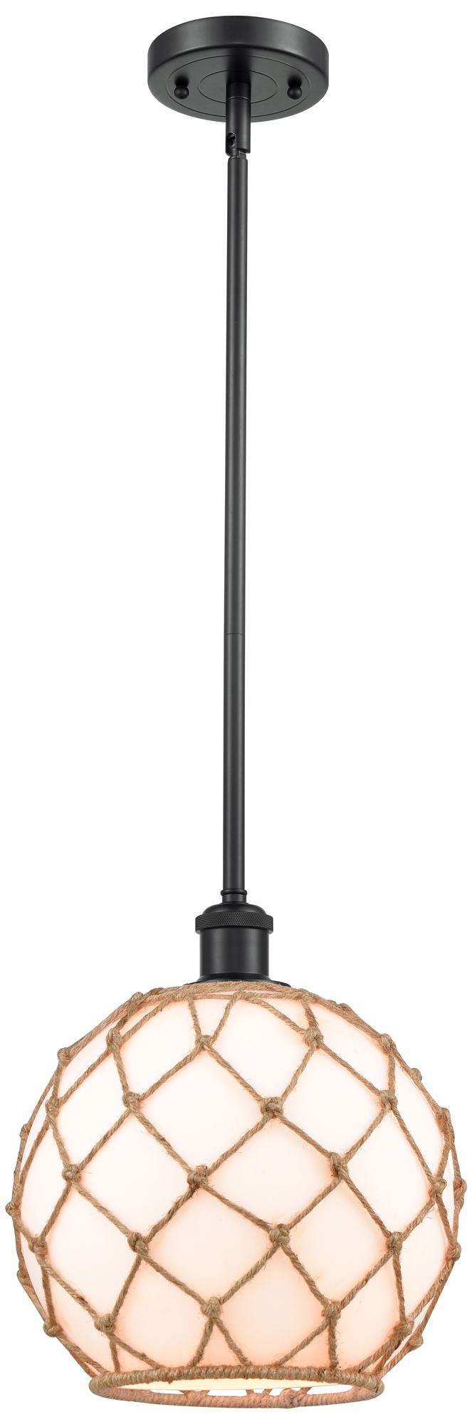 Farmhouse 10"W Stem Hung Matte Black Mini Pendant w/ White and Brown S