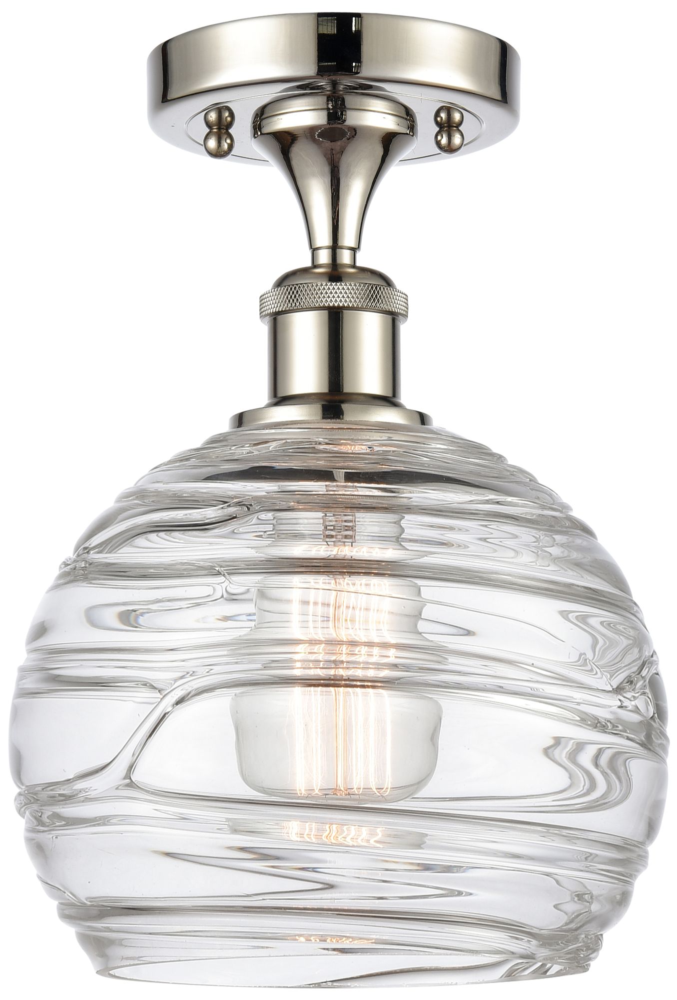 Athens 8" Polished Nickel Semi Flush Mount w/ Clear Deco Swirl Shade
