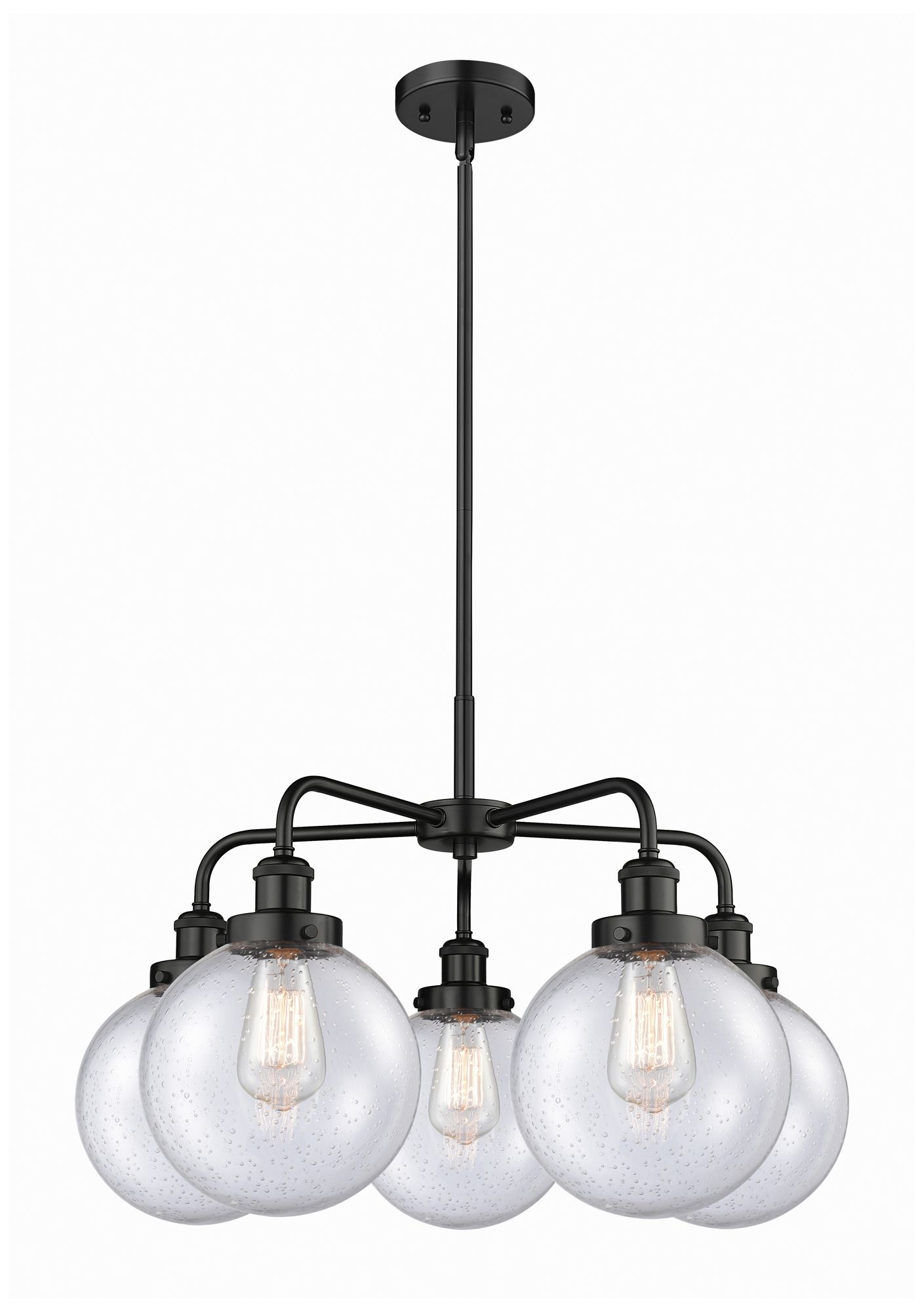 Beacon 26"W 5 Light Matte Black Stem Hung Chandelier With Seedy Glass