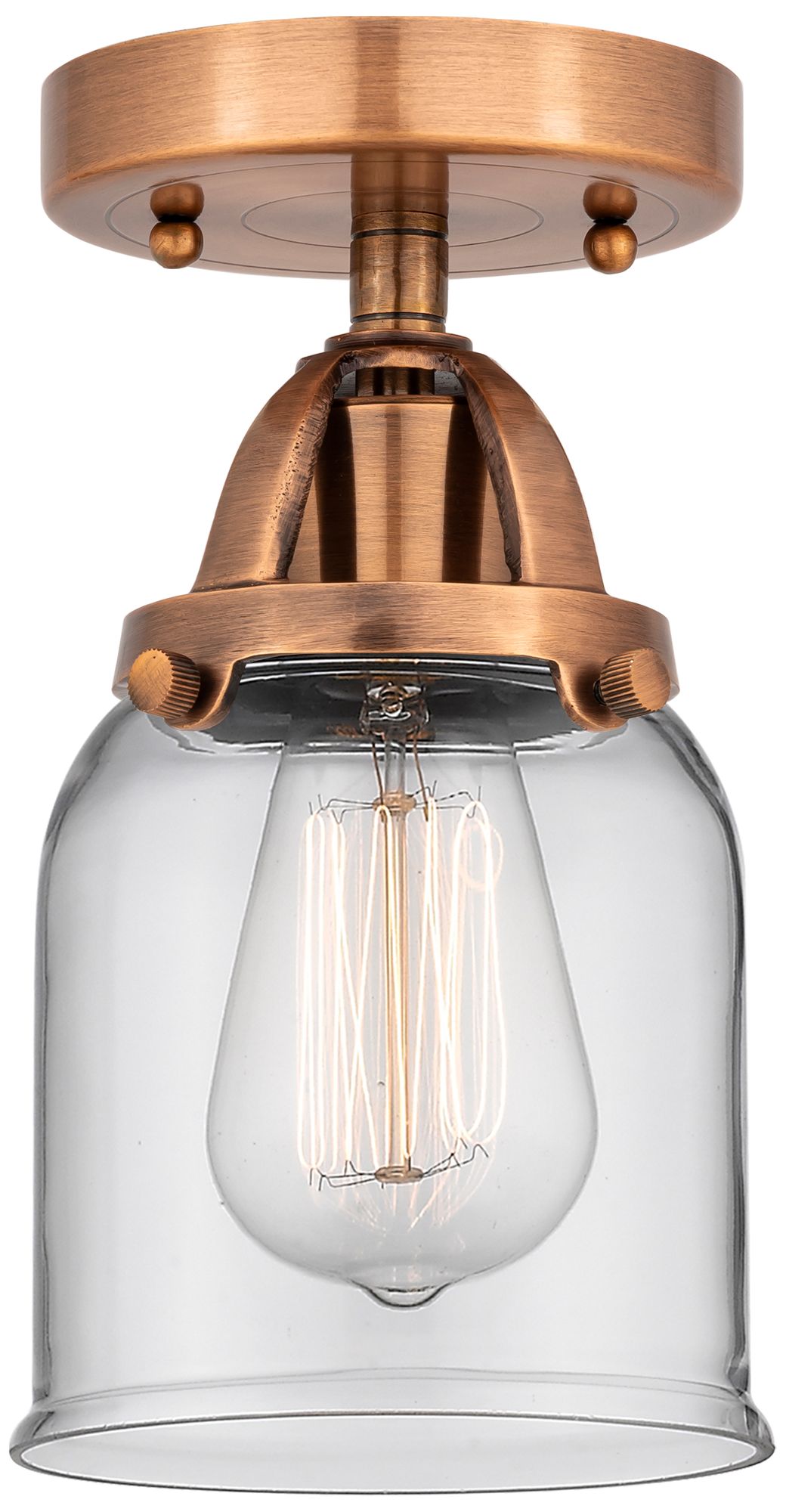 Nouveau 2 Bell 5" Semi-Flush Mount - Antique Copper - Clear Shade