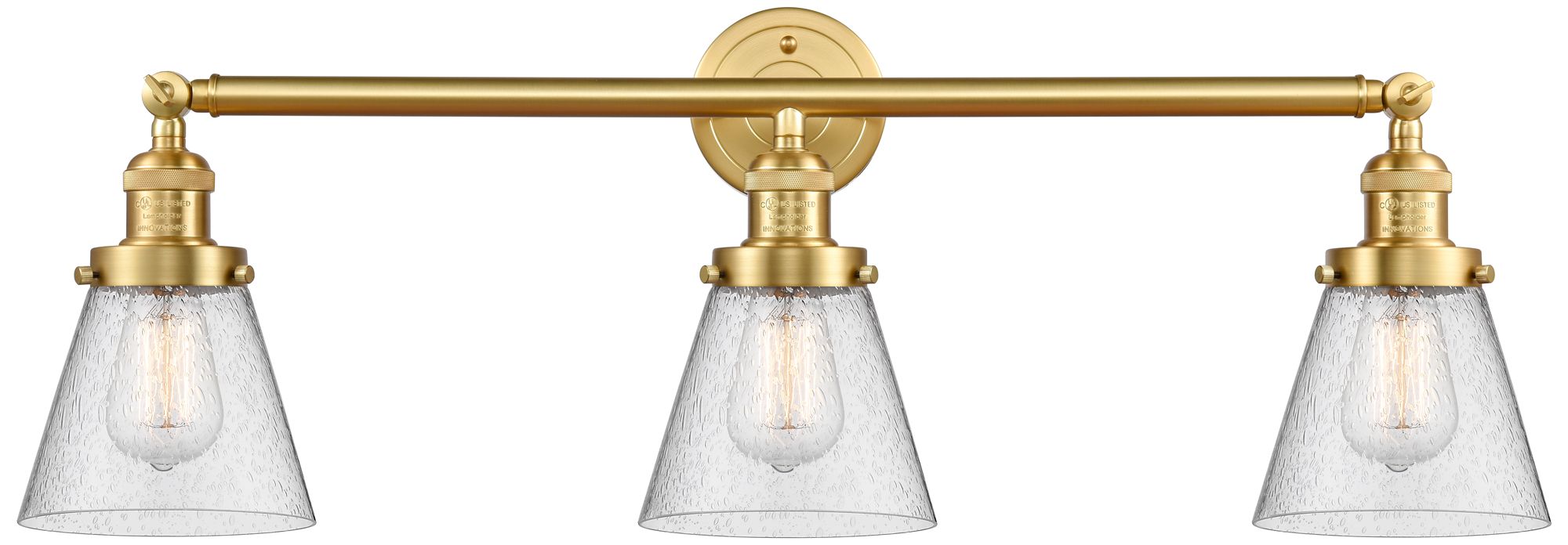 Cone 30" 3-Light Satin Gold Bath Light w/ Seedy Shade