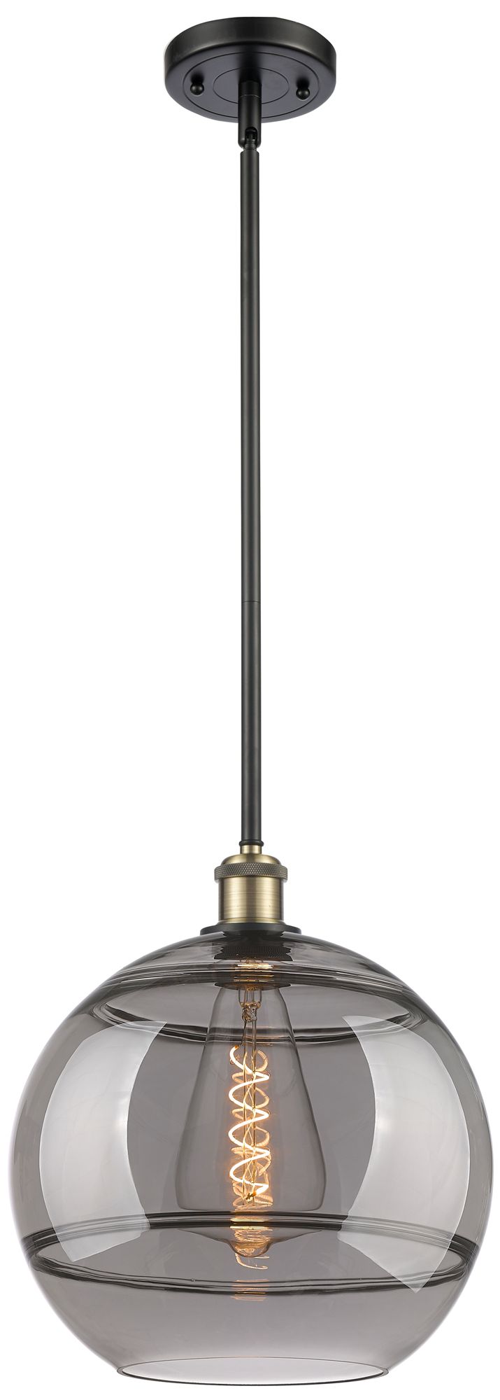 Ballston Rochester 12"W Black Brass Stemmed Mini Pendant w/ Smoke Shad
