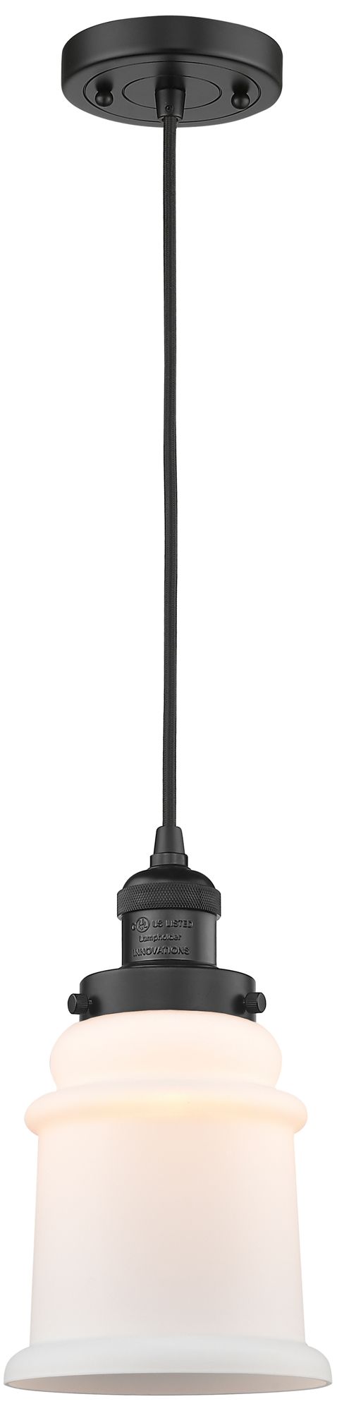 Canton 6" Matte Black Cord Hung Mini Pendant w/ Matte White Shade
