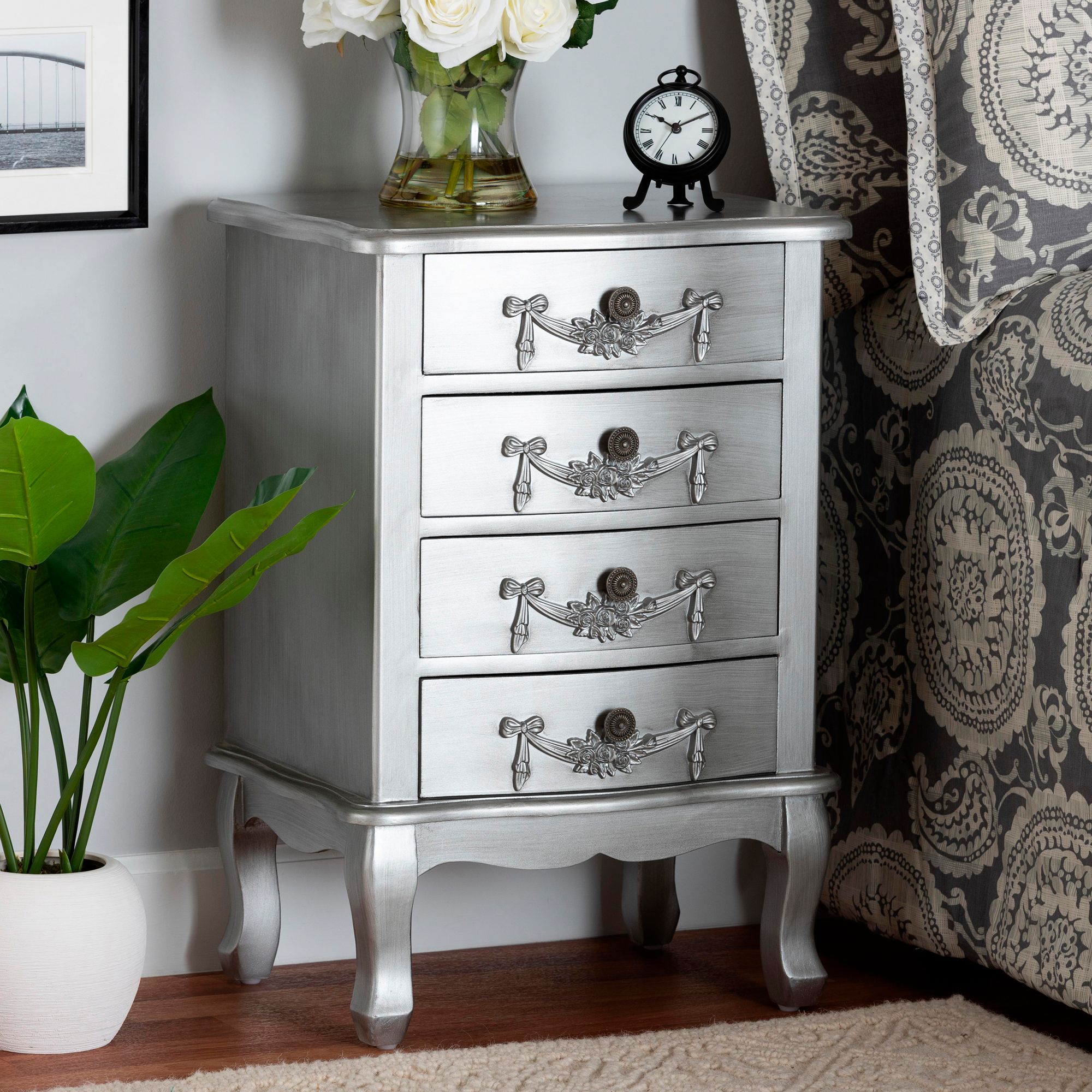 Callen 18 1/4" Wide Brushed Silver Wood 4-Drawer Nightstand