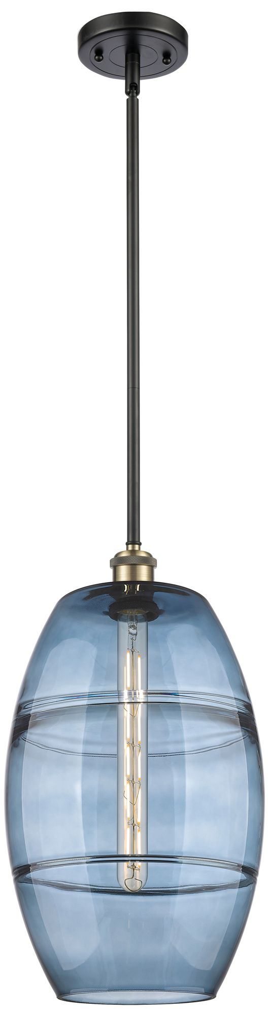 Ballston Vaz 10"W Black Antique Brass Stemmed Mini Pendant w/ Blue Sha