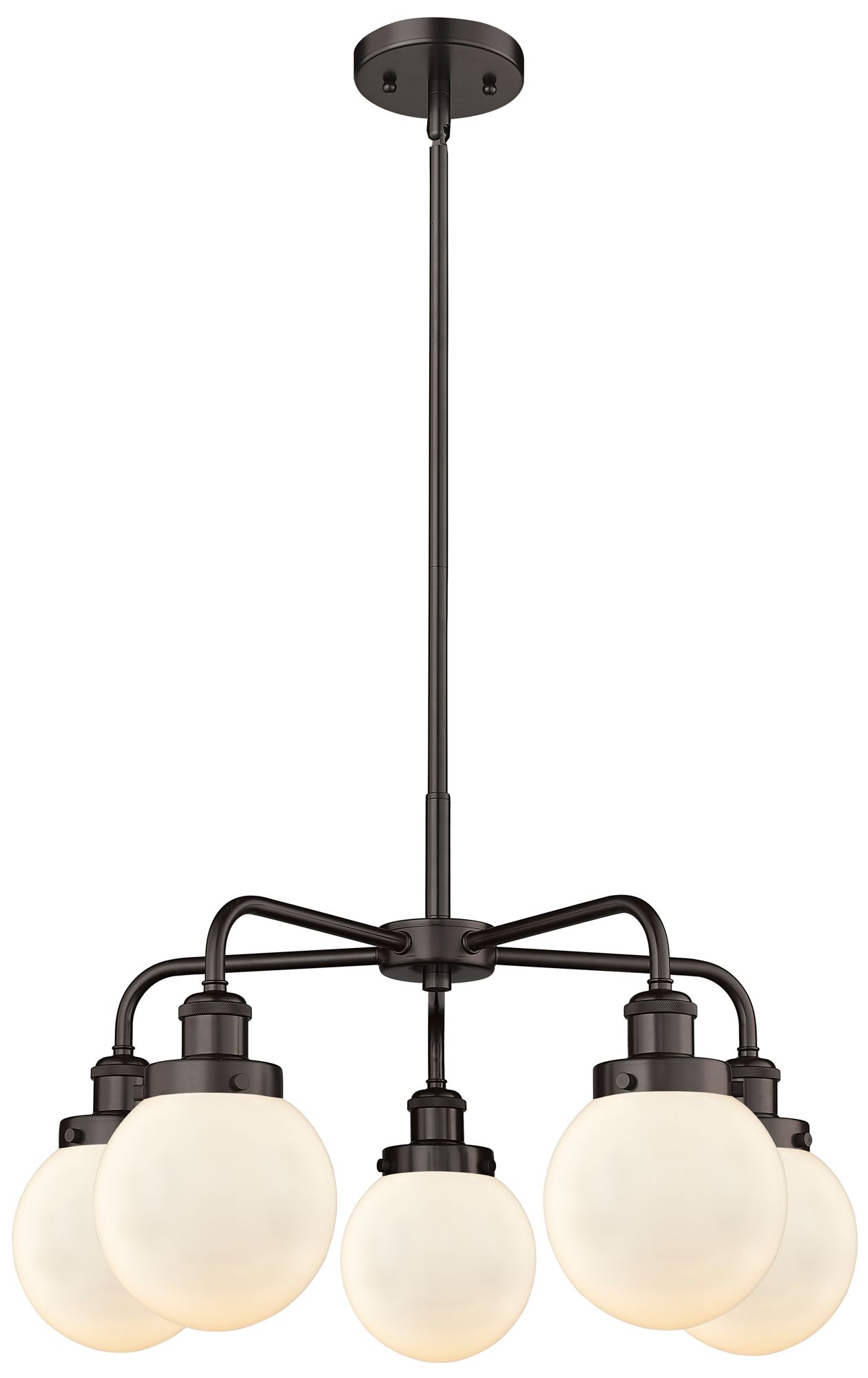 Beacon 24"W 5 Light Oil Rubbed Bronze Stem Hung Chandelier w/ White Sh