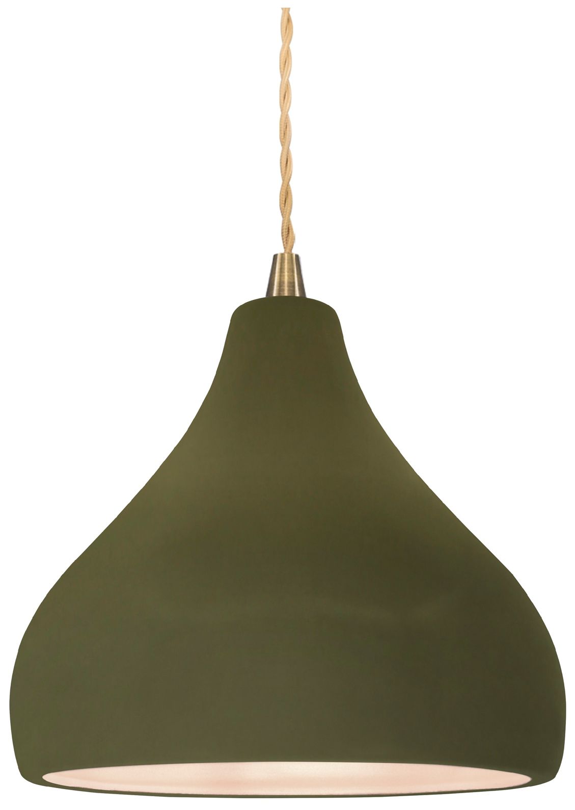 8"W Matte Green Frame Antique Brass Small Droplet Beige Twisted Pendan
