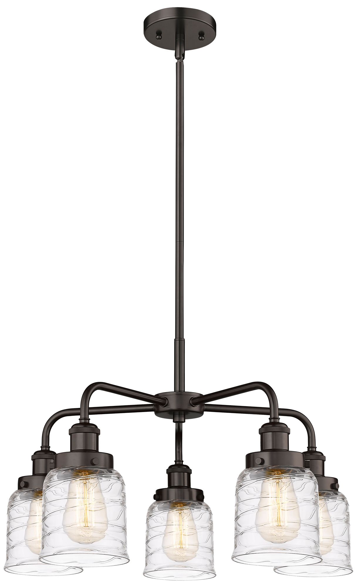 Bell 23"W 5 Light Rubbed Bronze Stem Hung Chandelier w/ Deco Swirl Sha