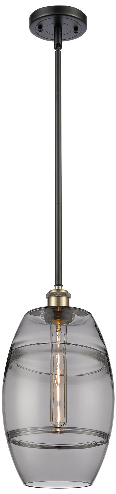 Ballston Vaz 8"W Black Brass Stemmed Mini Pendant w/ Light Smoke Shade
