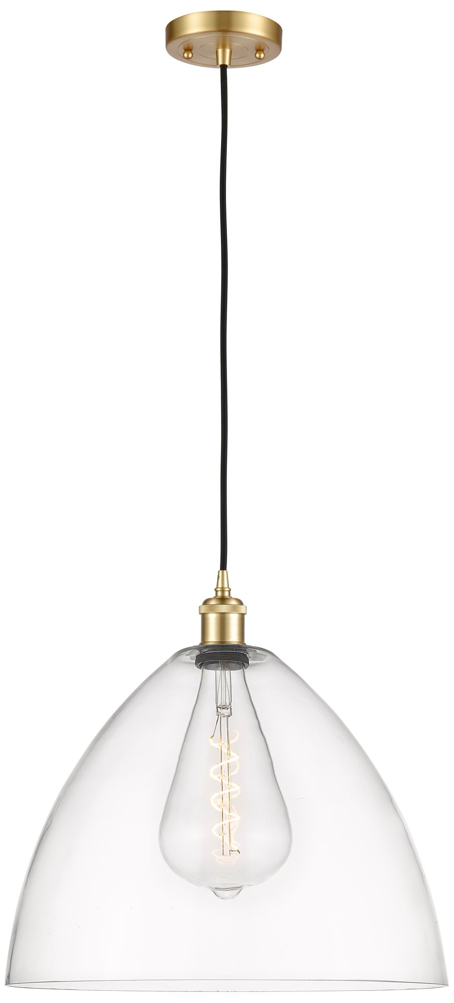 Ballston Bristol Glass 16" Satin Gold LED Pendant With Clear Shade