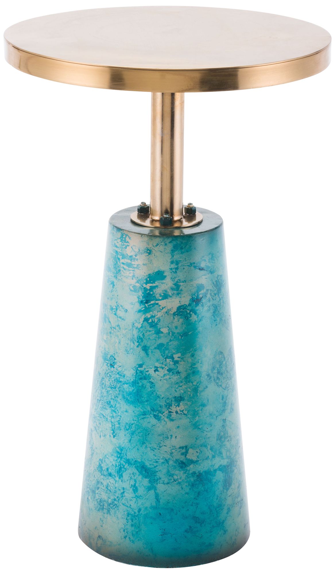 Zuo Zaphire 12" Wide Teal Blue and Gold Round End Table