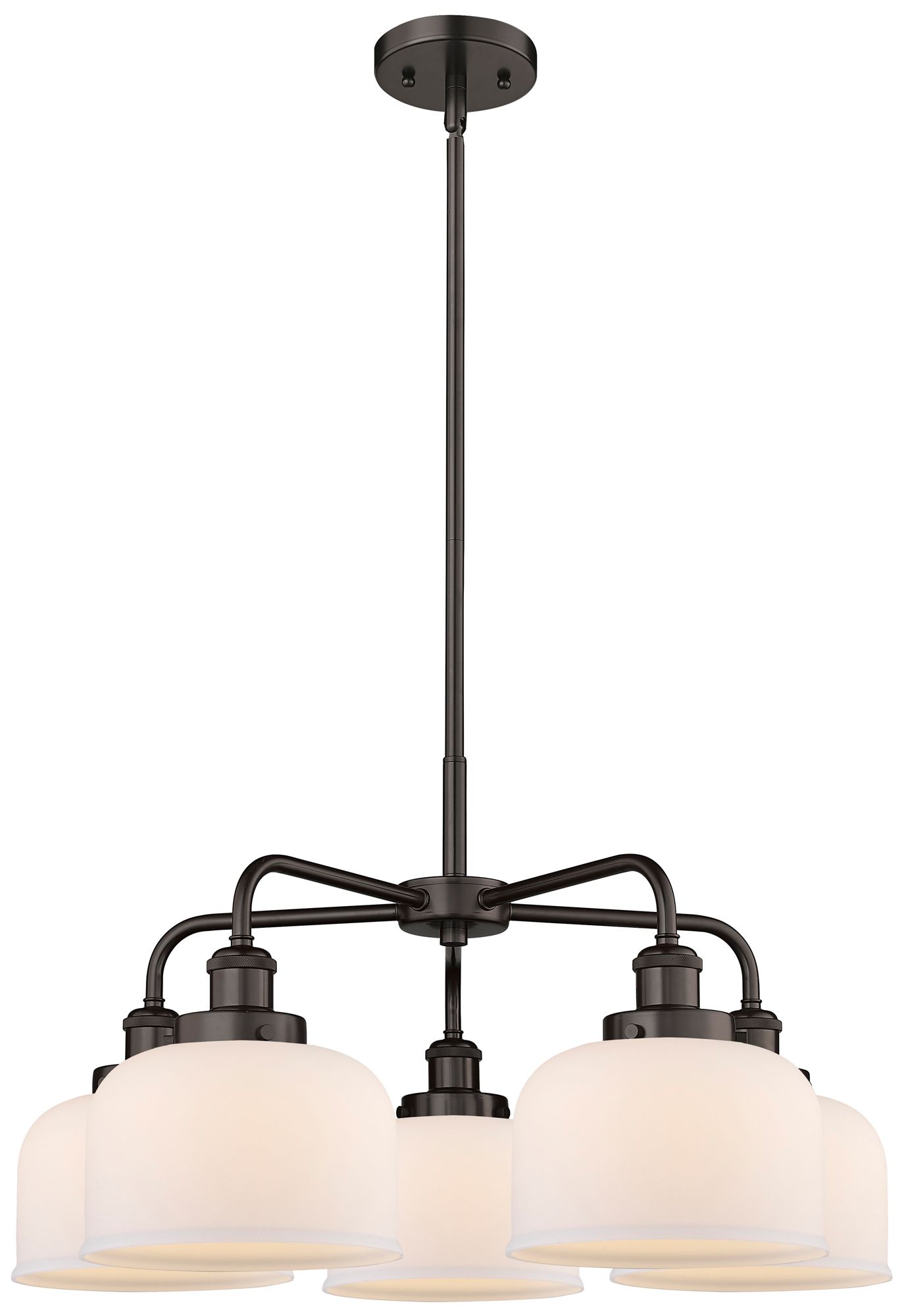 Bell 26"W 5 Light Oil Rubbed Bronze Stem Hung Chandelier w/ White Shad