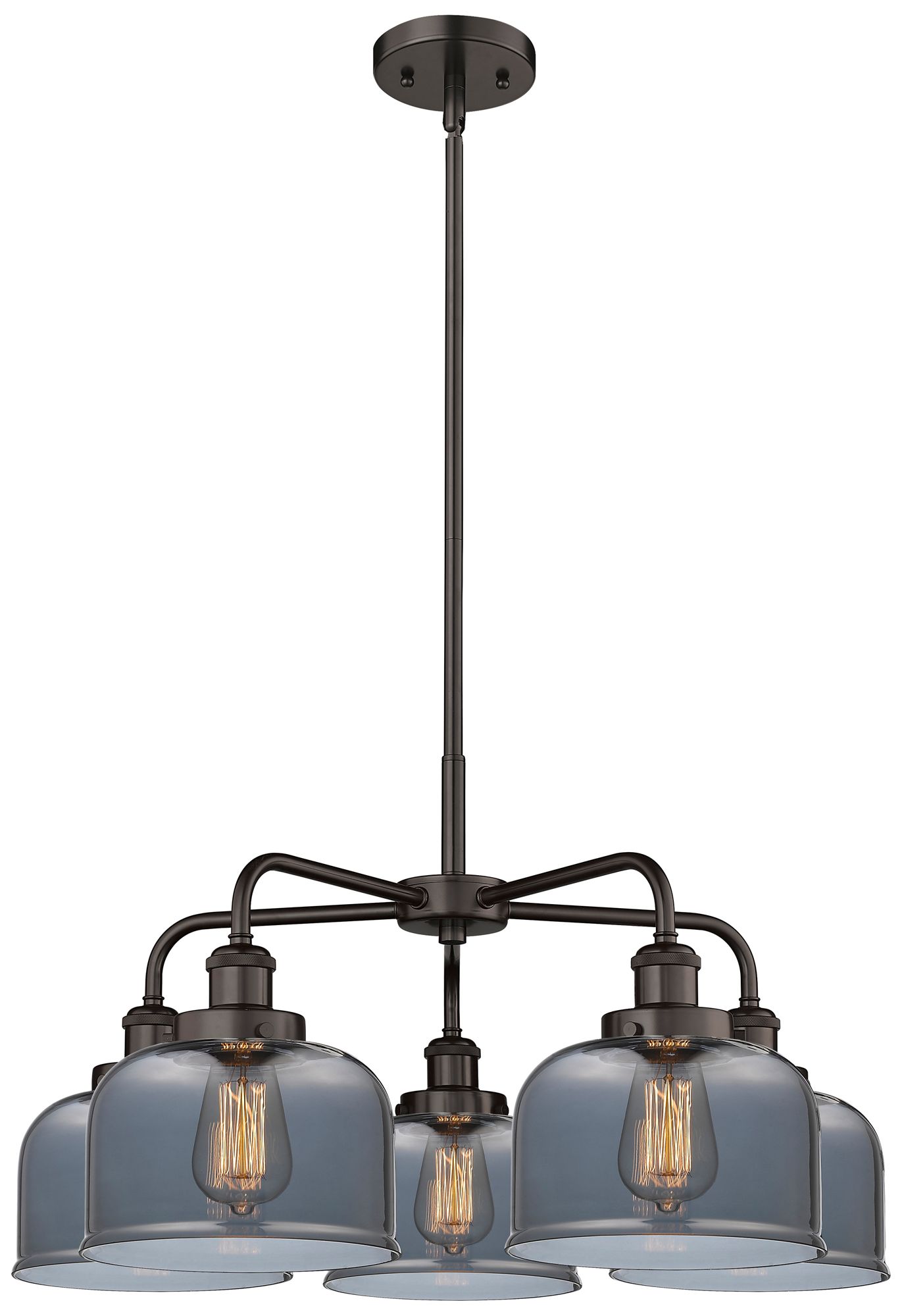 Bell 26"W 5 Light Oil Rubbed Bronze Stem Hung Chandelier w/ Smoke Shad