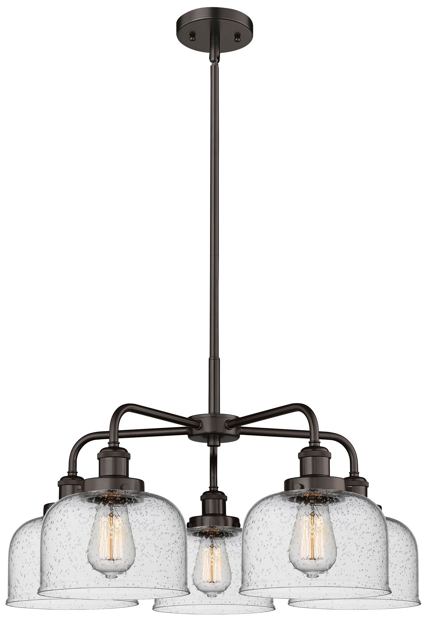 Bell 26"W 5 Light Oil Rubbed Bronze Stem Hung Chandelier w/ Seedy Shad