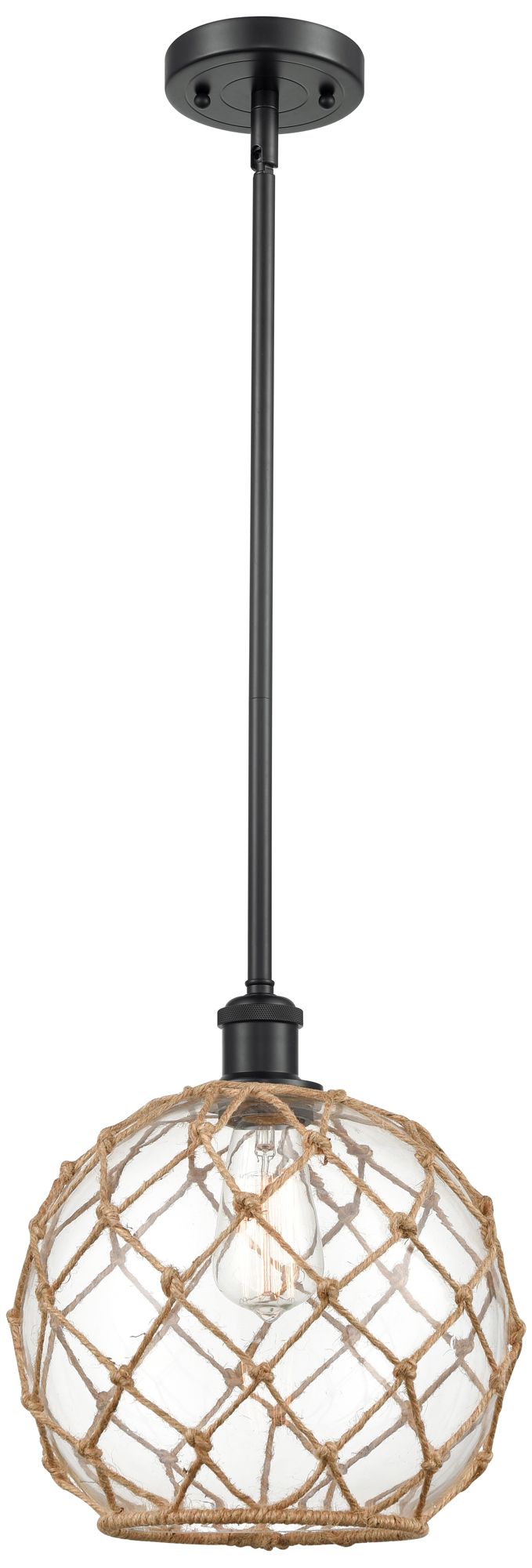 Farmhouse 10"W Stem Hung Matte Black Mini Pendant w/ Clear and Brown S