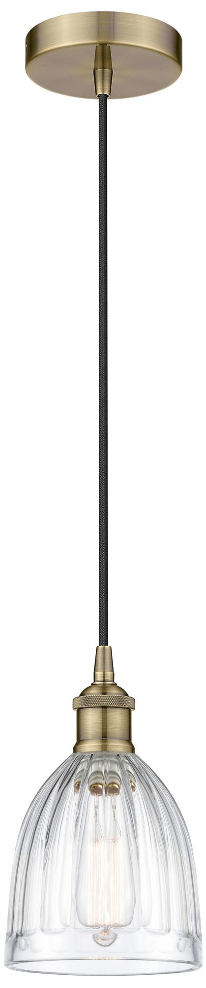 Edison Brookfield 6" Antique Brass Cord Hung Mini Pendant w/ Clear Sha
