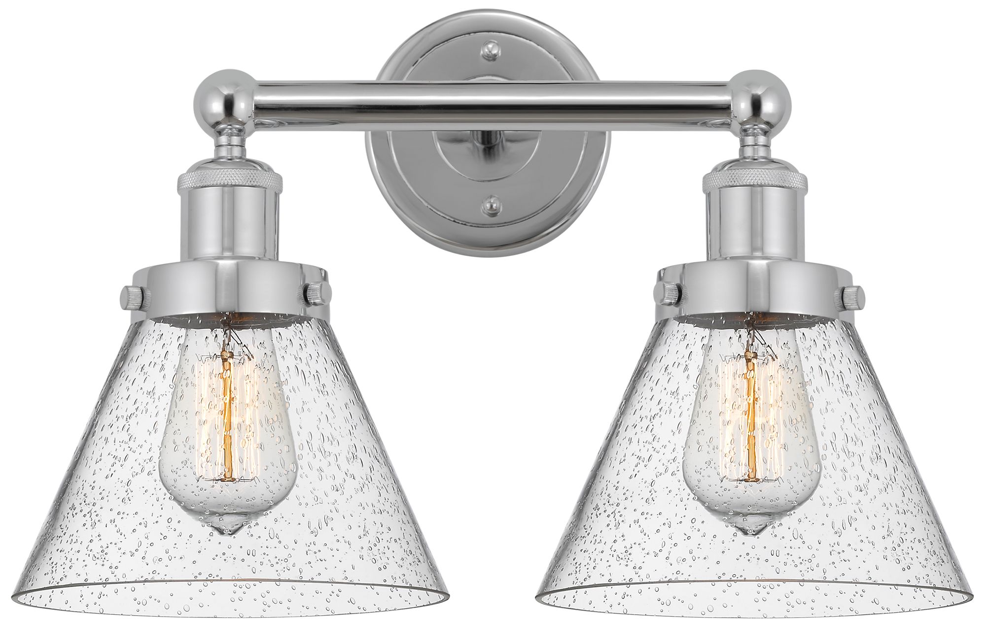 Edison Large Cone 16" 2-Light Polished Chrome Bath Light w/ Seedy Shad