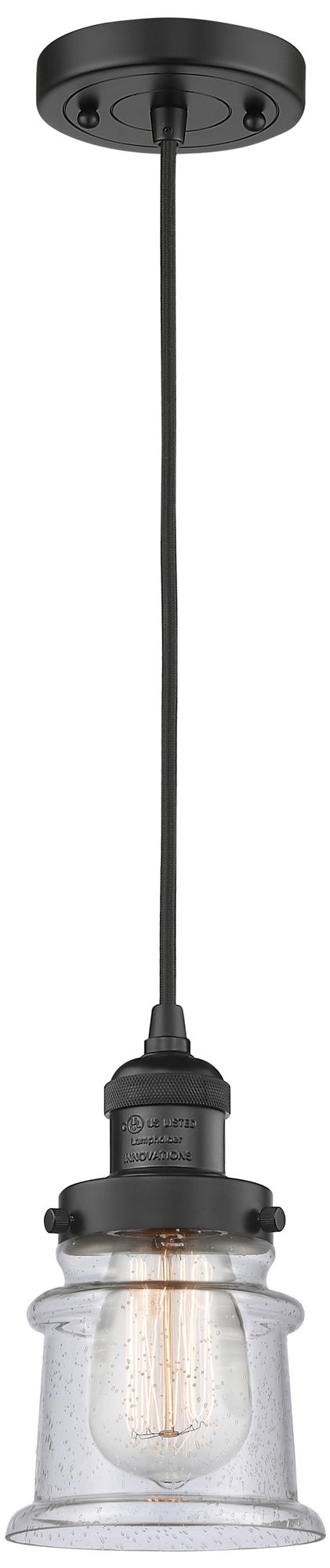 Franklin Canton 5" Matte Black Corded Mini Pendant w/ Seedy Shade