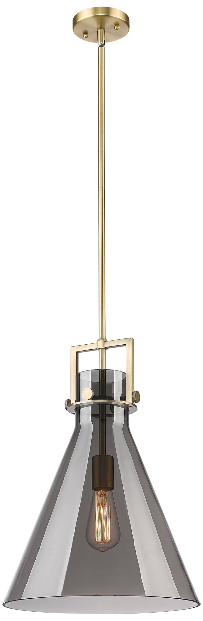 Newton Cone 14" Wide Stem Hung Brushed Brass Pendant With Smoke Shade