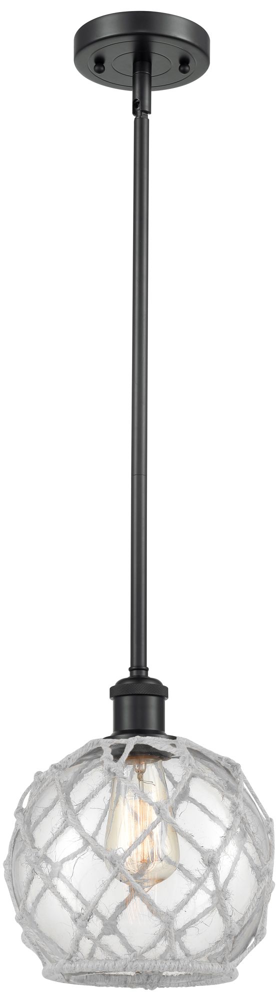 Farmhouse 8"W Stem Hung Matte Black Mini Pendant w/ Clear and White Sh