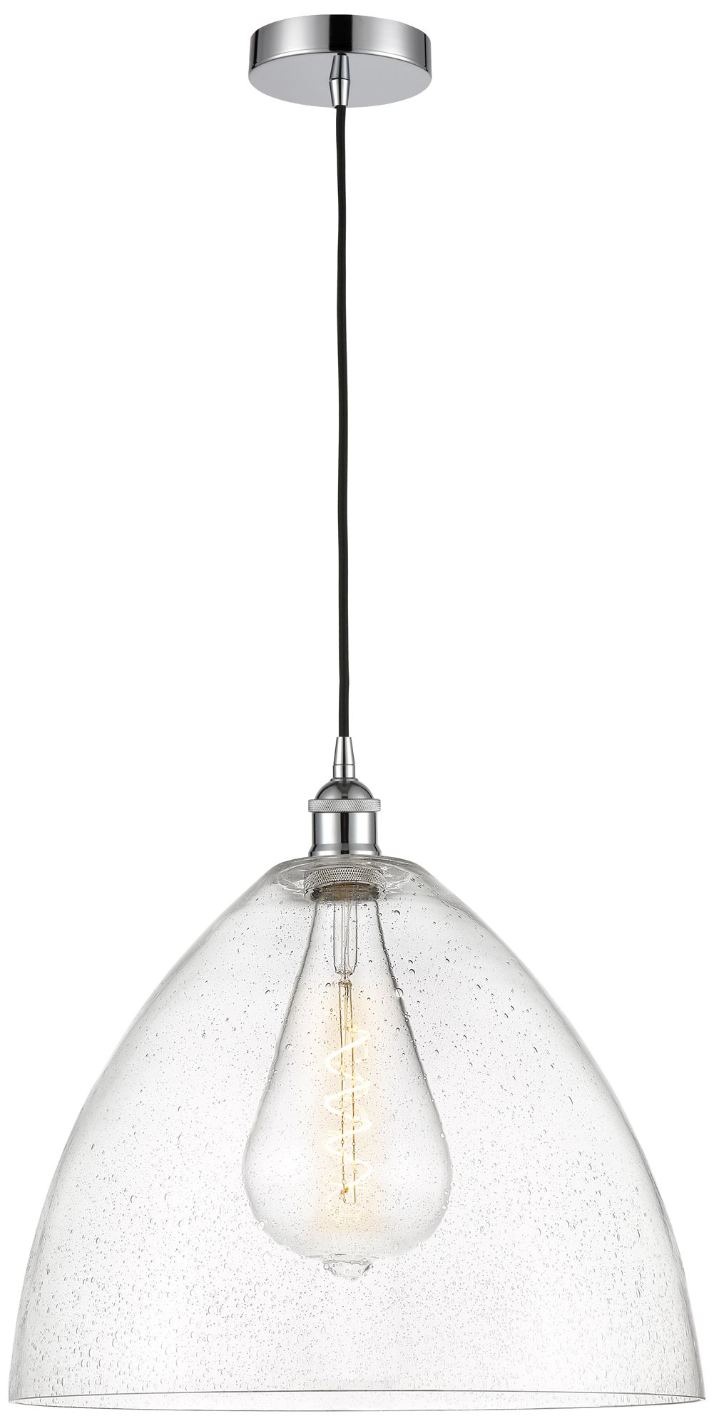 Edison Dome 16" Polished Chrome Cord Hung Pendant w/ Seedy Shade