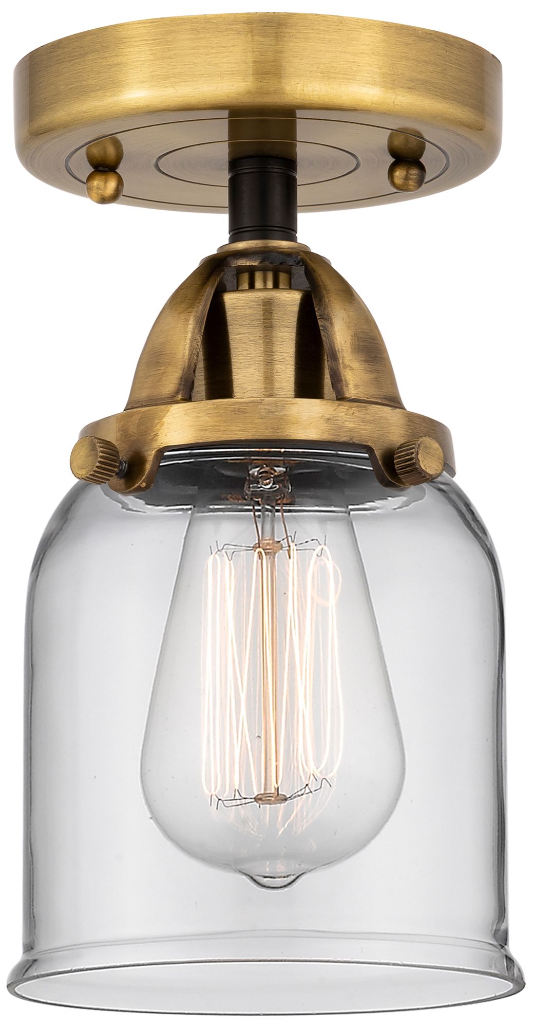 Nouveau 2 Bell 5" Semi-Flush Mount - Black Antique Brass - Clear Shade
