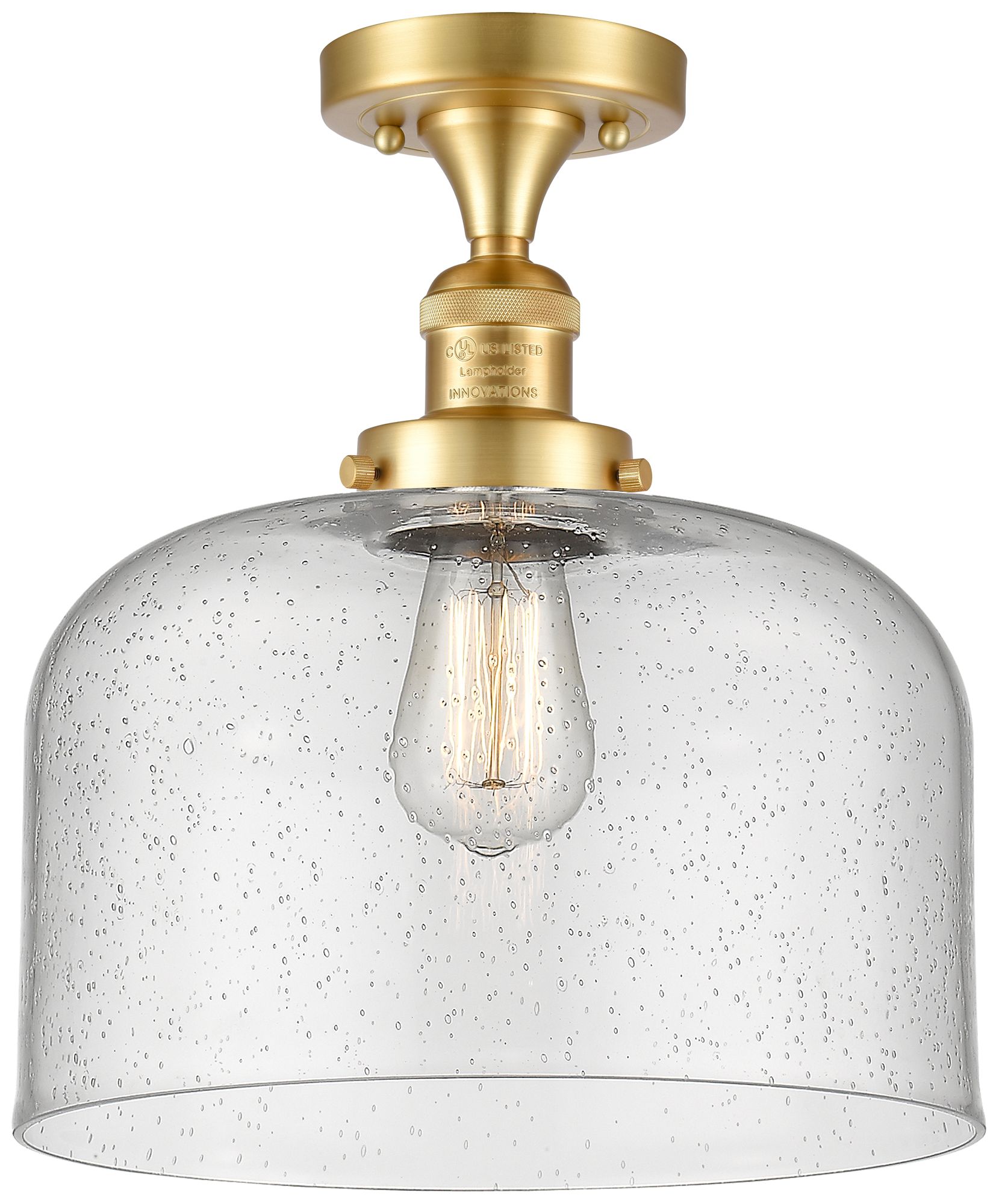 Bell 12" Wide Satin Gold Semi Flush Mount w/ Seedy Shade